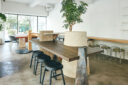 橋本卓磨 / oocによる、東京・中央区の「o tokyo」。自身のオフィス兼カフェの計画。物が潜在的に持つ“存在としての美しさ”に興味を持ち、石や人工物などの“連続から成る什器”を中心に据える空間を考案。予期しない違和感や非日常が創造の原点となる環境も意図テスク側から「テーブル1」「テーブル2」「テーブル3」を見る。 photo©橋本越百