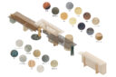 橋本卓磨 / oocによる、東京・中央区の「o tokyo」。自身のオフィス兼カフェの計画。物が潜在的に持つ“存在としての美しさ”に興味を持ち、石や人工物などの“連続から成る什器”を中心に据える空間を考案。予期しない違和感や非日常が創造の原点となる環境も意図テーブルアクソメ図 image©ooc