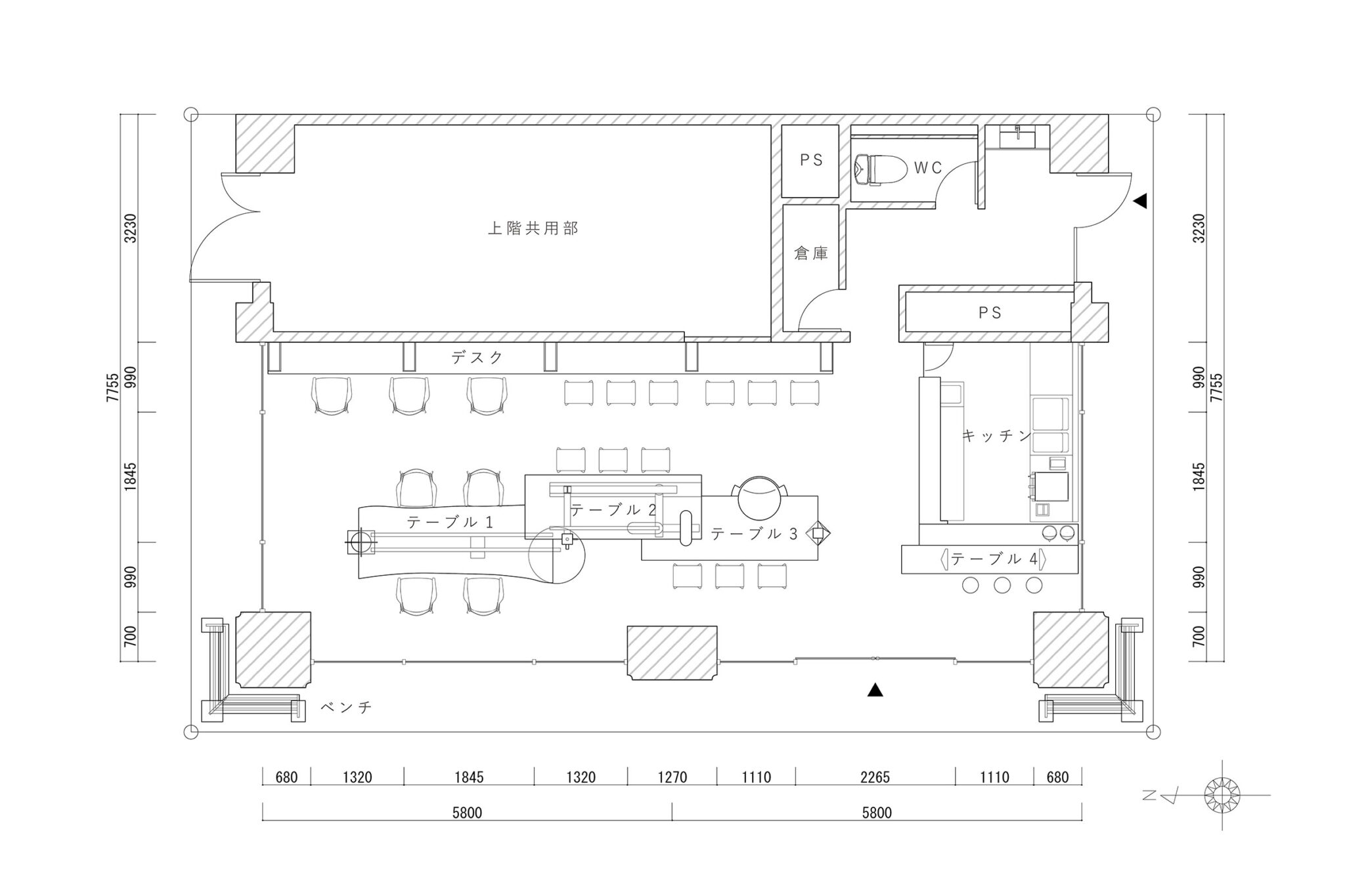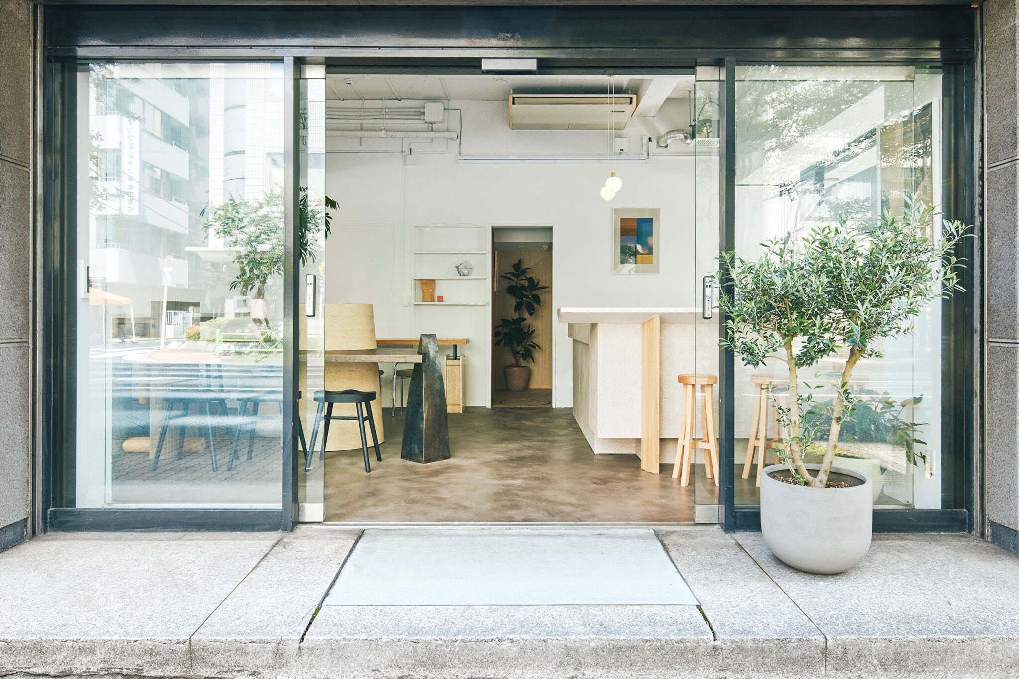 空間の用途は、自社のオフィス兼カフェであり、街に開いた空間になることを意図した。