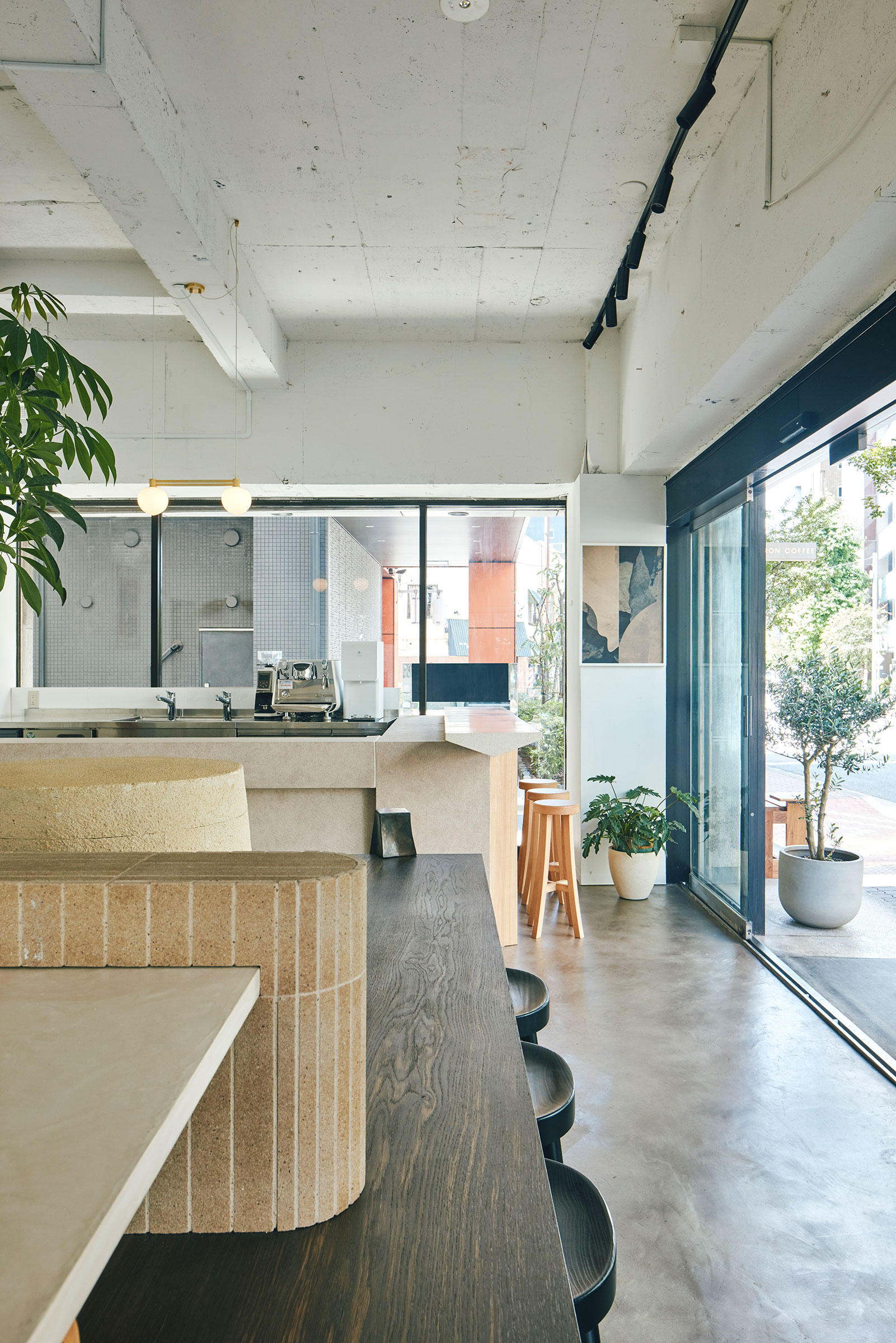 自身のオフィス兼カフェの計画です。建築家は、物が潜在的に持つ“存在としての美しさ”に興味を持ち、石や人工物などの“連続から成る什器”を中心に据える空間を考案しました。また、予期しない違和感や非日常が創造の原点となる環境も意図されました。店舗の場所はこちら(Google Map)。
