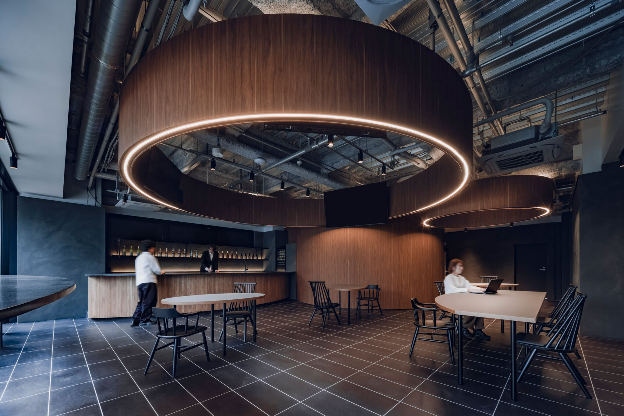 SHARE 五十嵐理人 / IGArchitectsによる、東京の「〇」。オフィスの1層を多用途に使える場とする計画。“使い方が更新され続ける”与件に対し、“空間の余地”自体を“空間の構成”とする設計を志向。スケールレスな“6つのリング”で変化に耐えうる“骨格”を創り出す