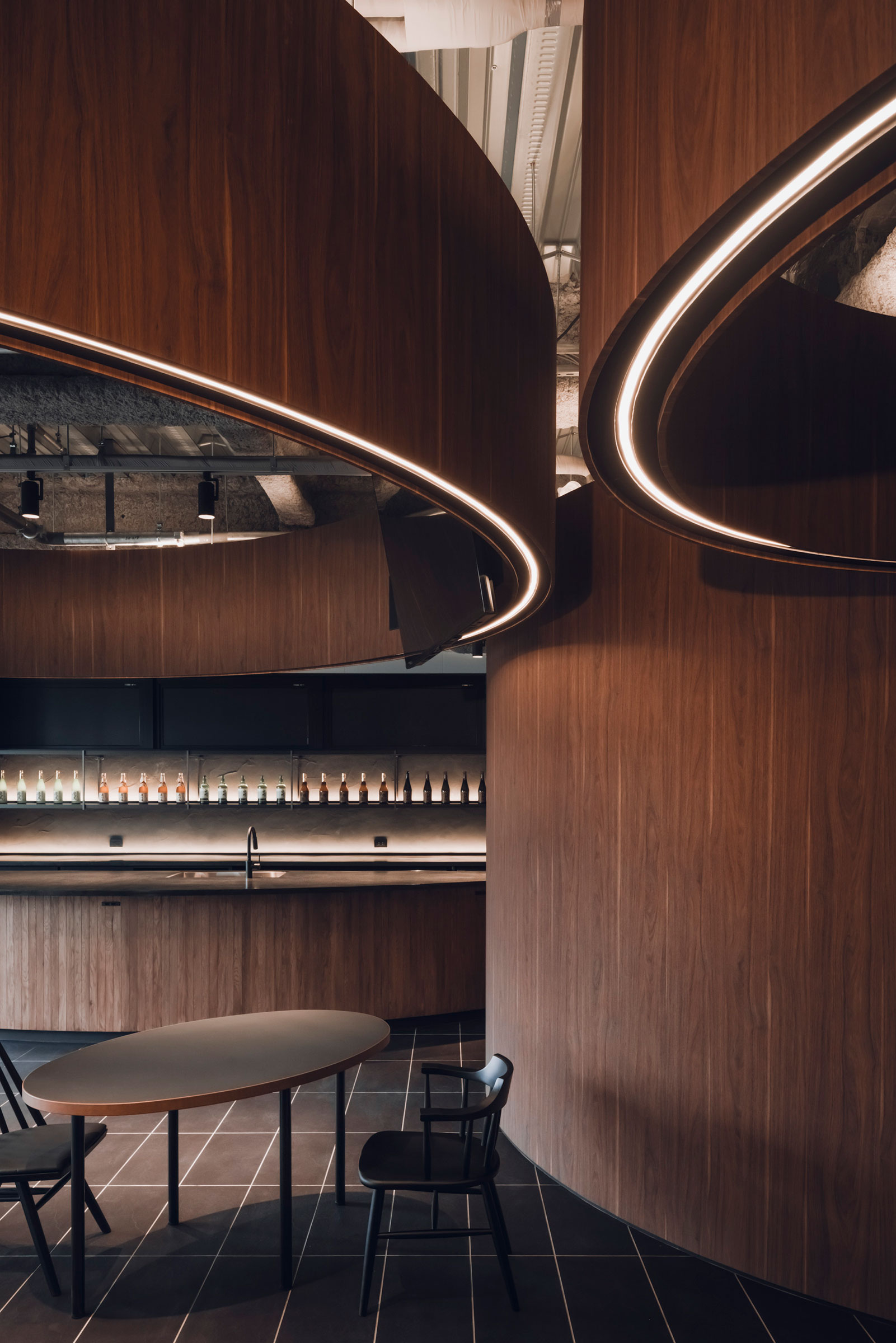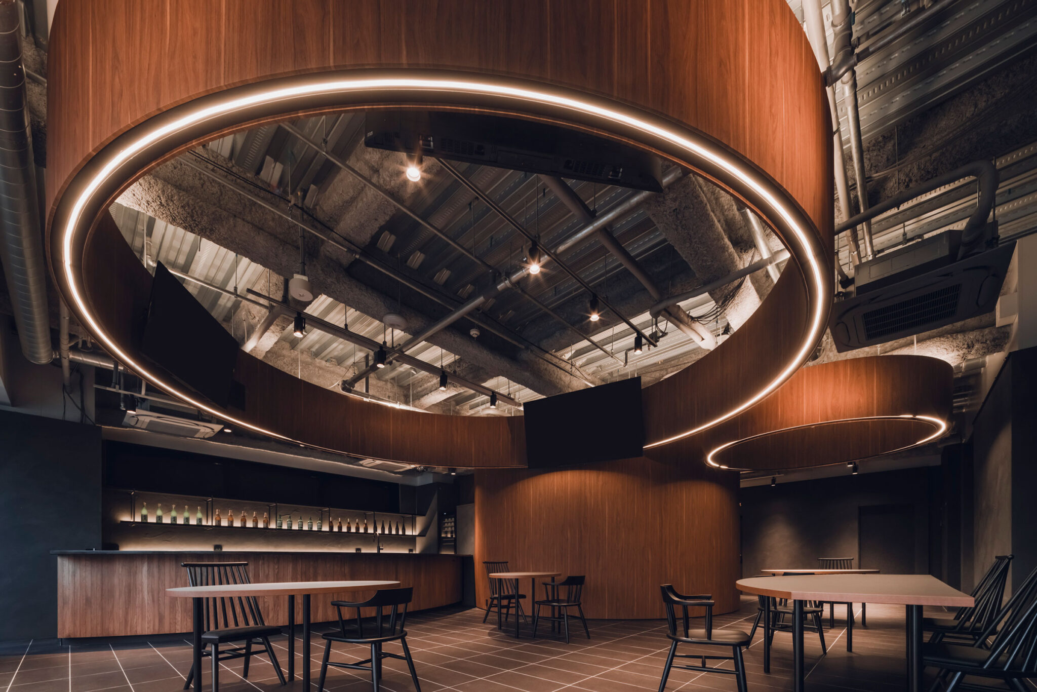 これらのリングは、空間を仕切る壁でも、明確な部屋でもなく、人の滞留や視線、行為を緩やかに誘導する存在として配置された。つなぐこと、切り離すこと、包み込むこと、外部へと開くことといった相反する性質を併せ持ちながら、空間に引力と斥力を生み出し、人と空間の関係を更新し続ける。