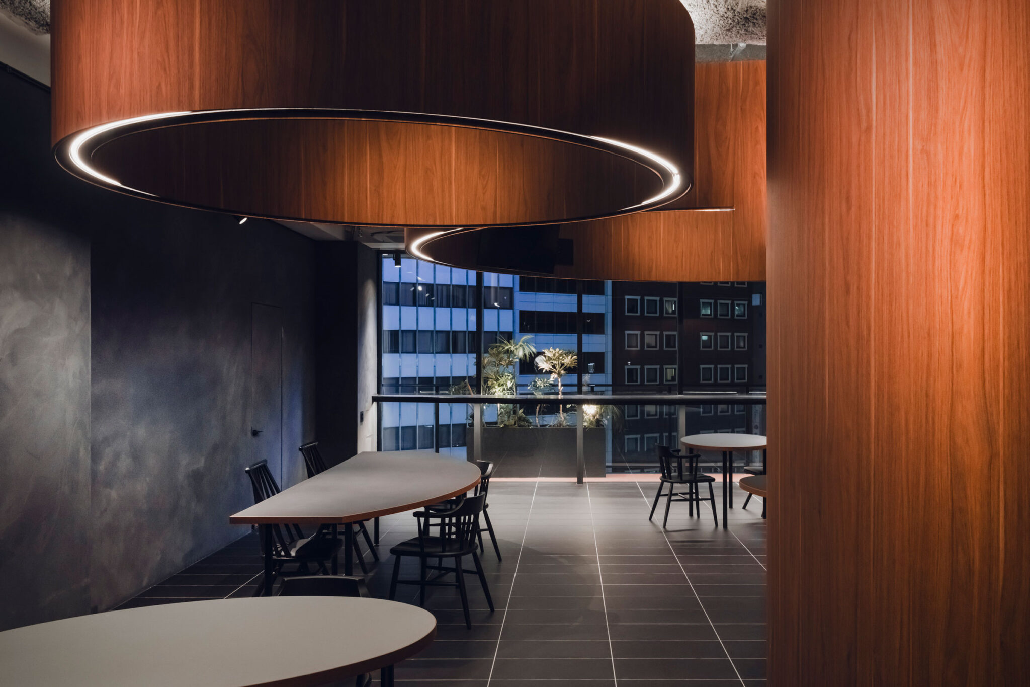 While responding directly to the client’s requests, the project avoids defining them as singular uses or functions. Through the configuration of the rings, it establishes a spatial framework capable of withstanding change. In the contemporary context, a diversity of functions and behaviors that cannot be encompassed by the term “office” overlap and extend throughout the floor.
