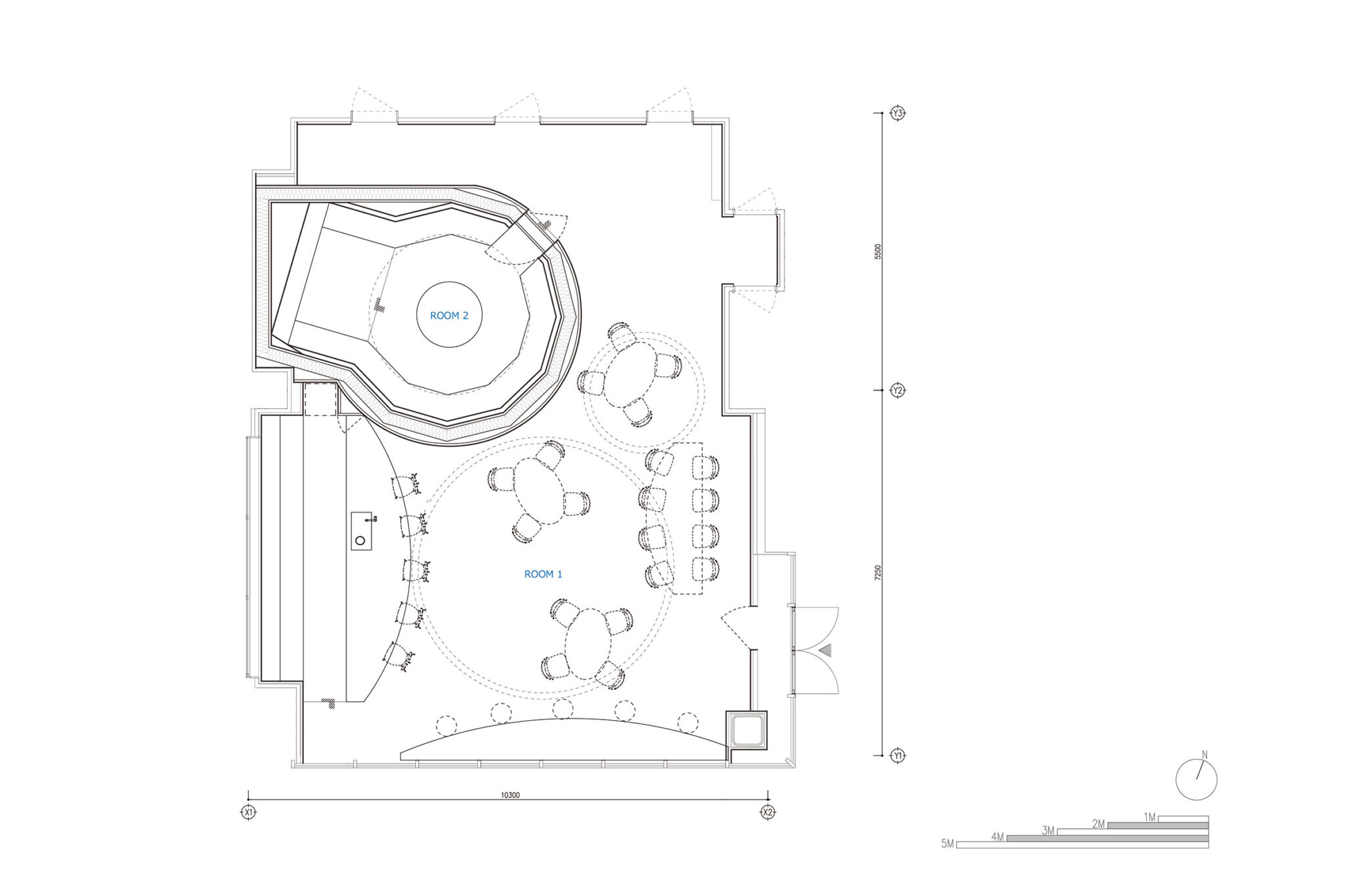 This project involves the renovation of a single-floor office in Shibuya. Rather than an office organized around a specific, fixed function, the brief called for a place capable of accommodating multiple, unfixed modes of use, including employee welfare, receptions, and other forms of gathering.