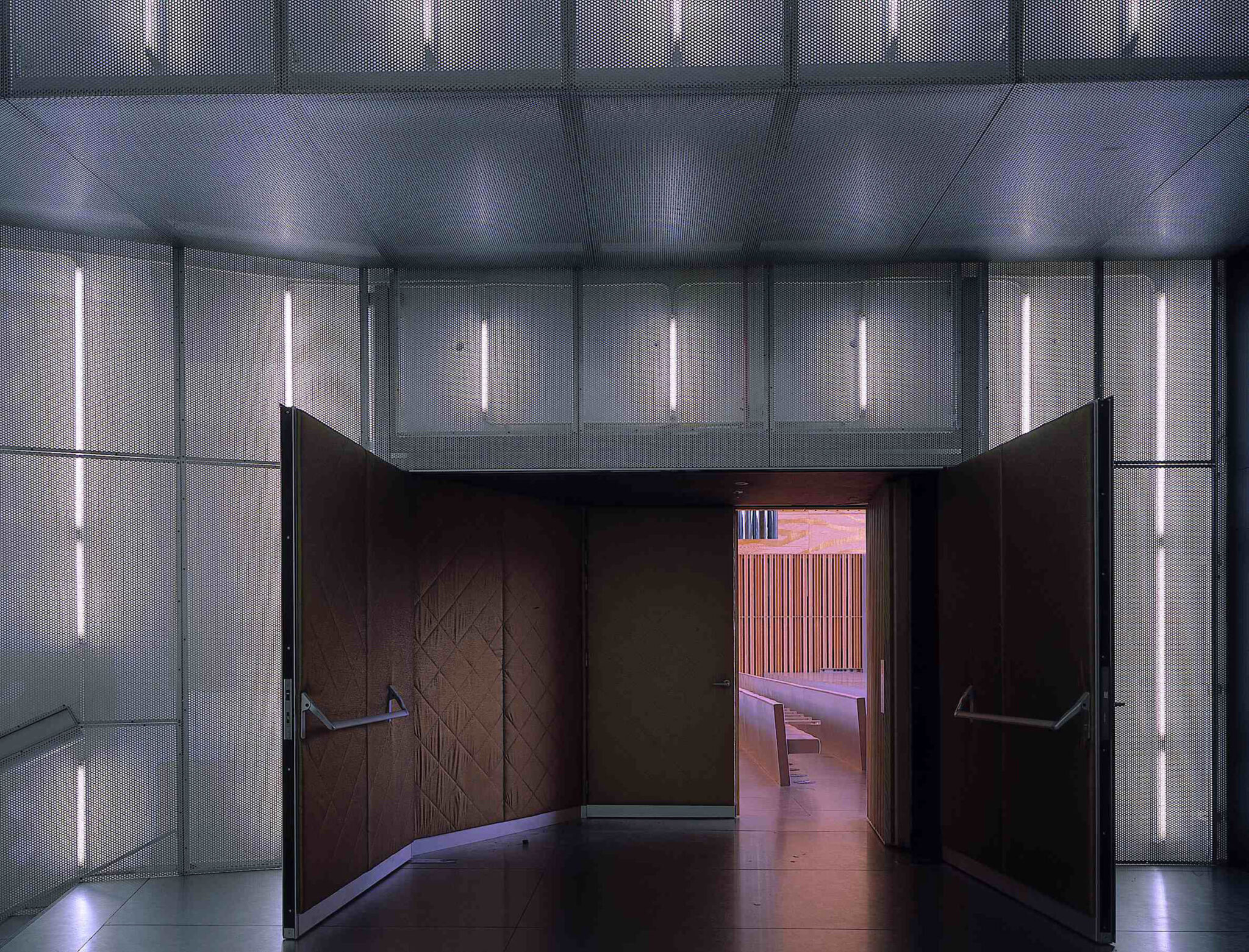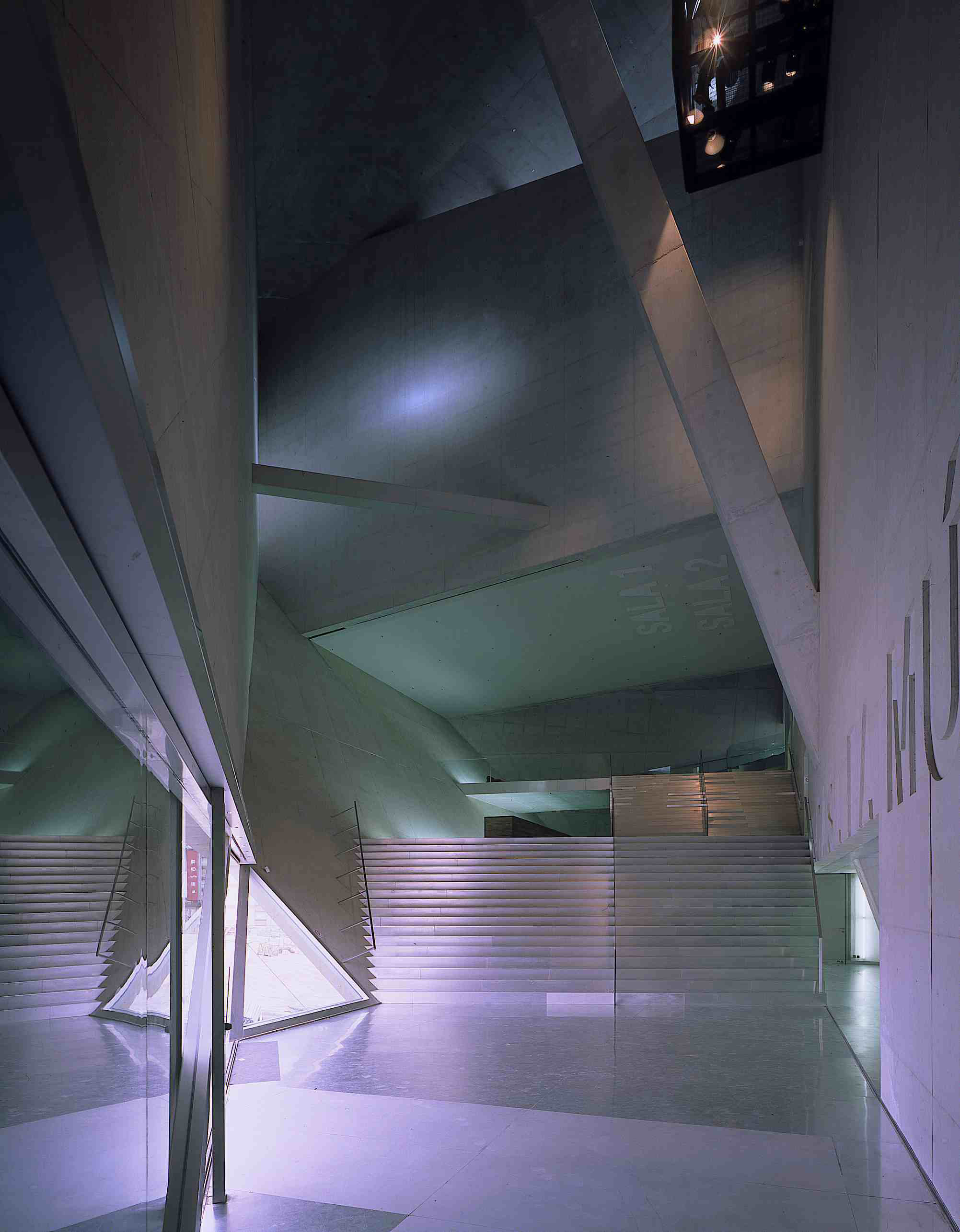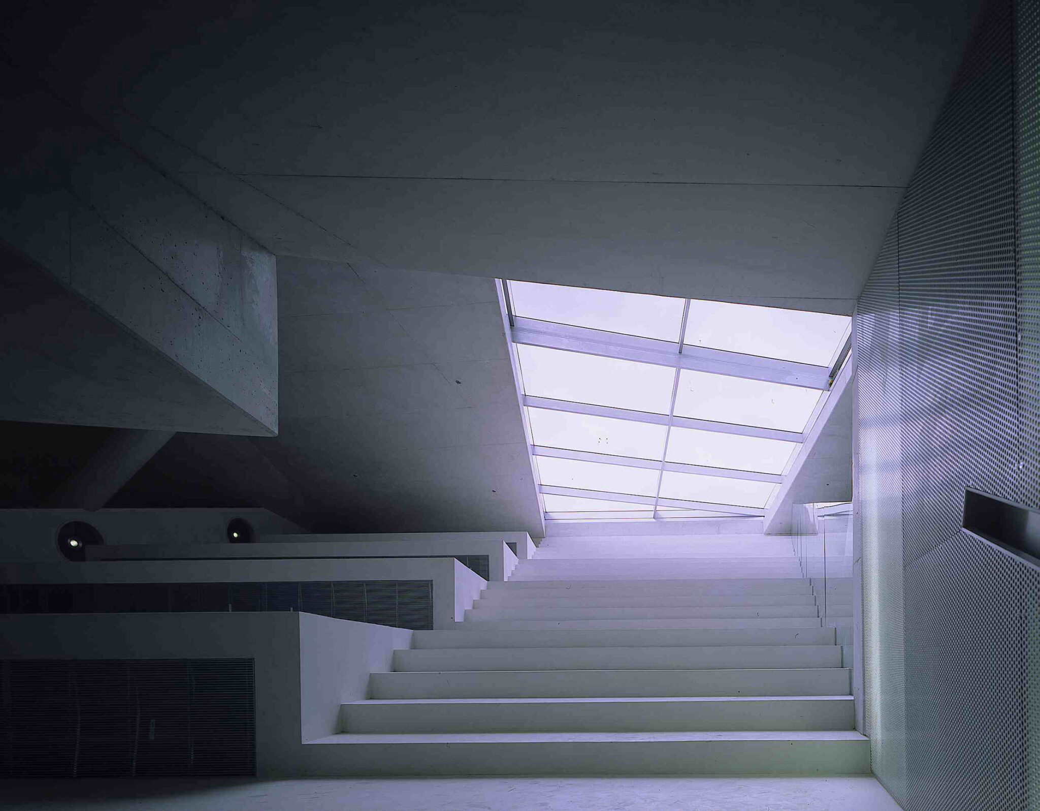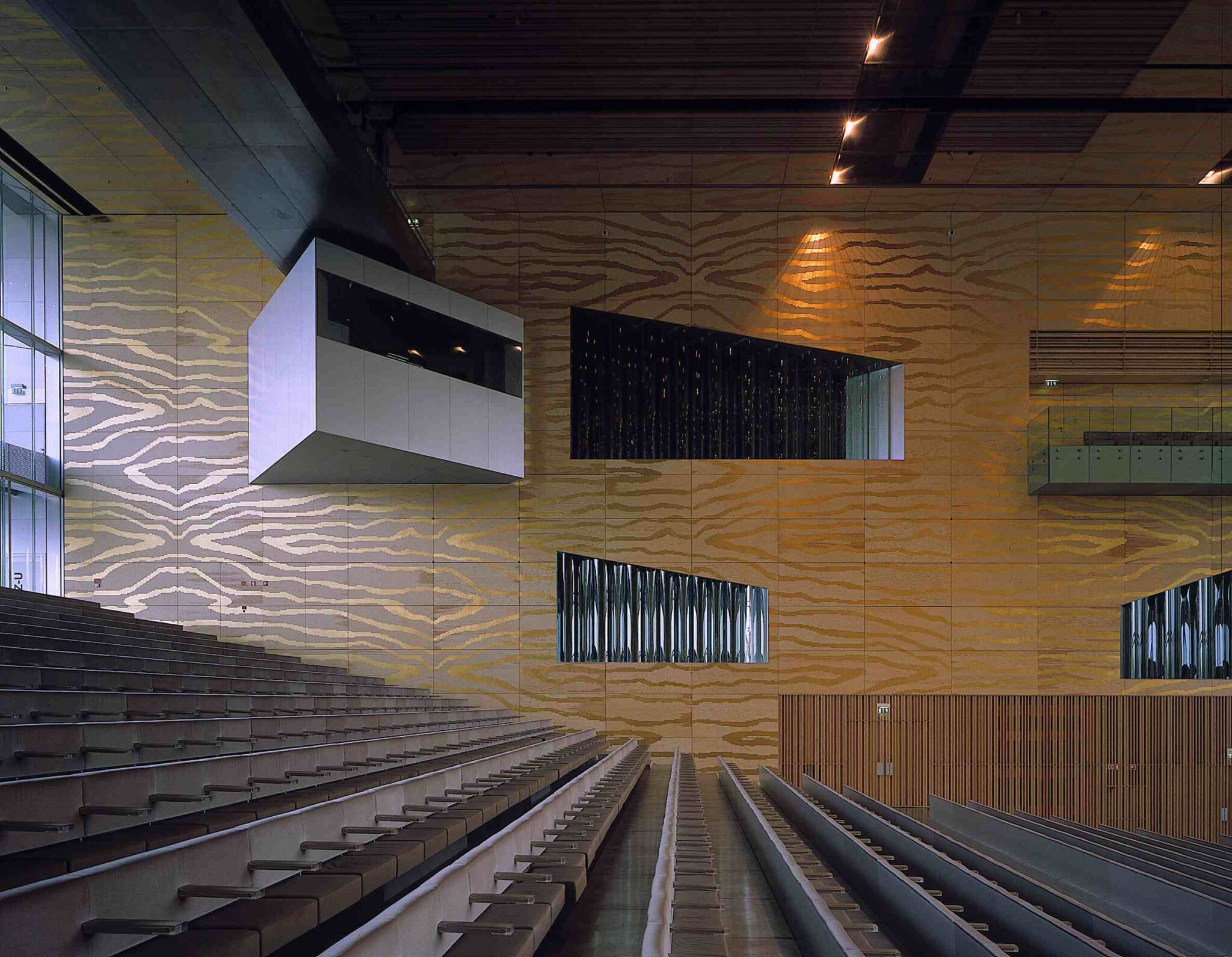 There is deliberately no large central foyer; instead, a continuous public route connects the spaces around the Grand Auditorium by means of stairs, platforms and escalators. The building becomes an architectural adventure.