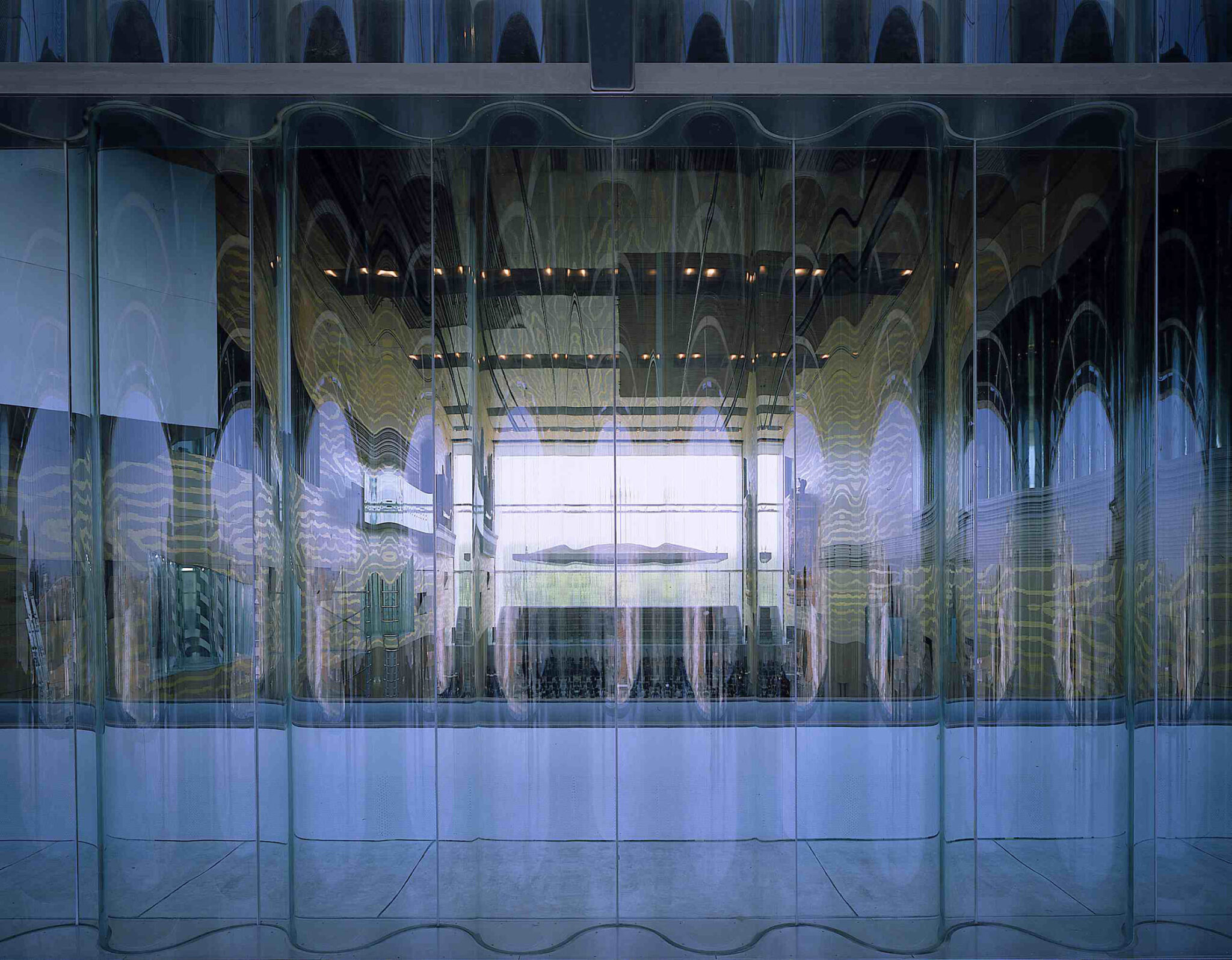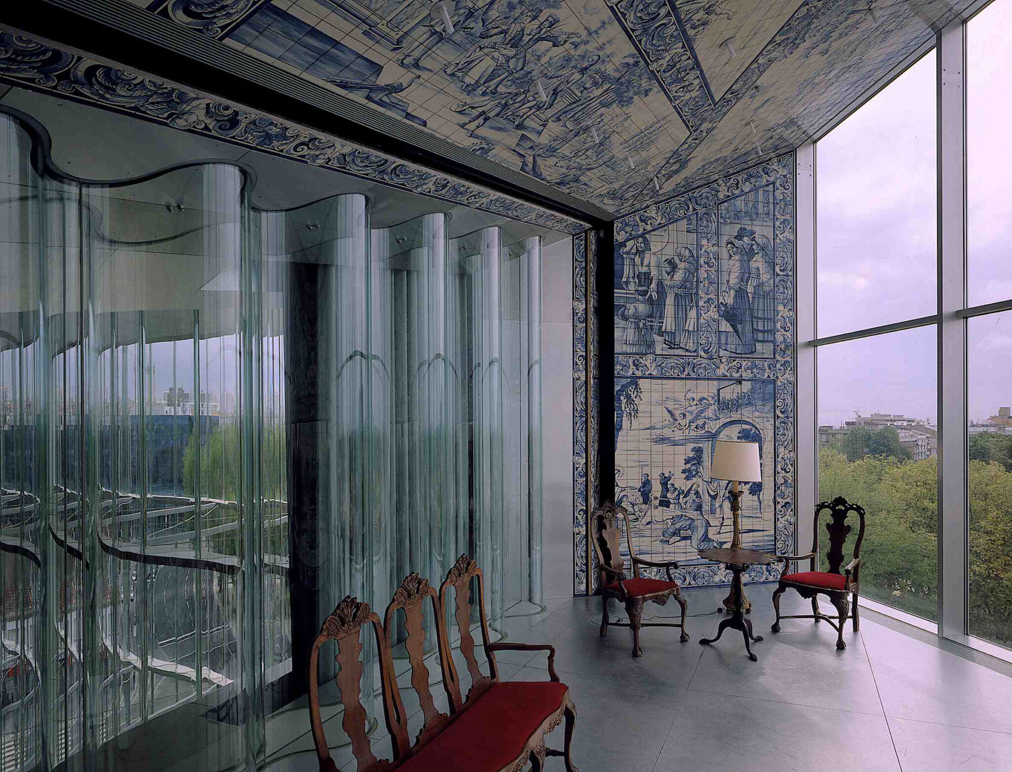 During the Design Phase OMA researched new materials and new applications of existing and Portuguese materials exclusively for Casa da Musica such as; the corrugated glass for the windows of the Auditoria, the used tiles for different rooms and the chairs, canopy and wall finish in the Grand Auditorium.