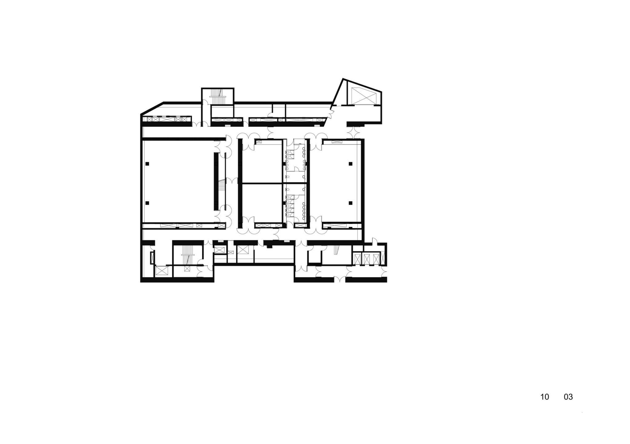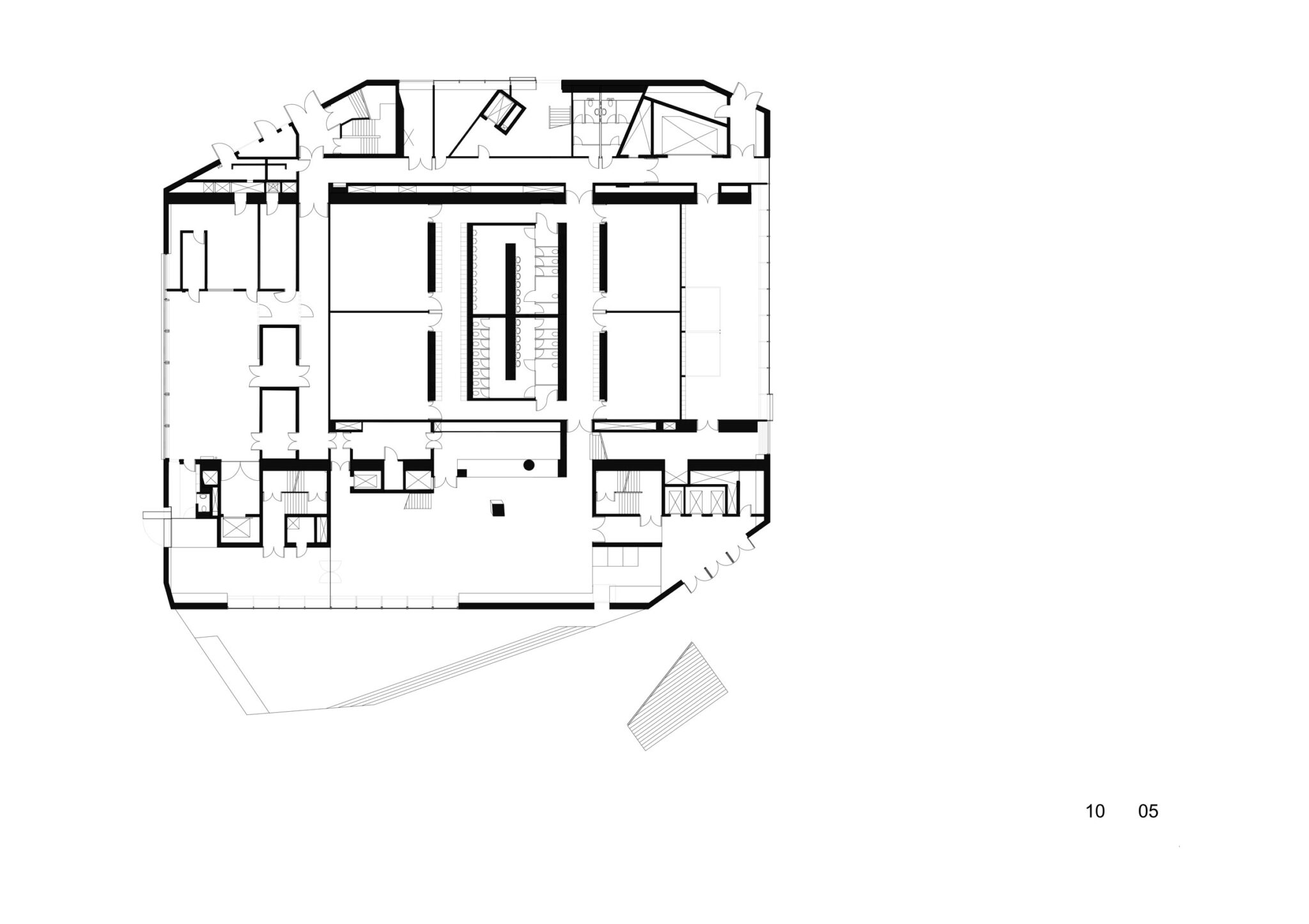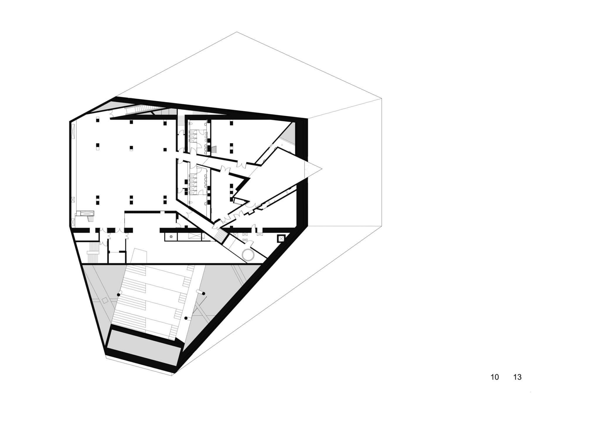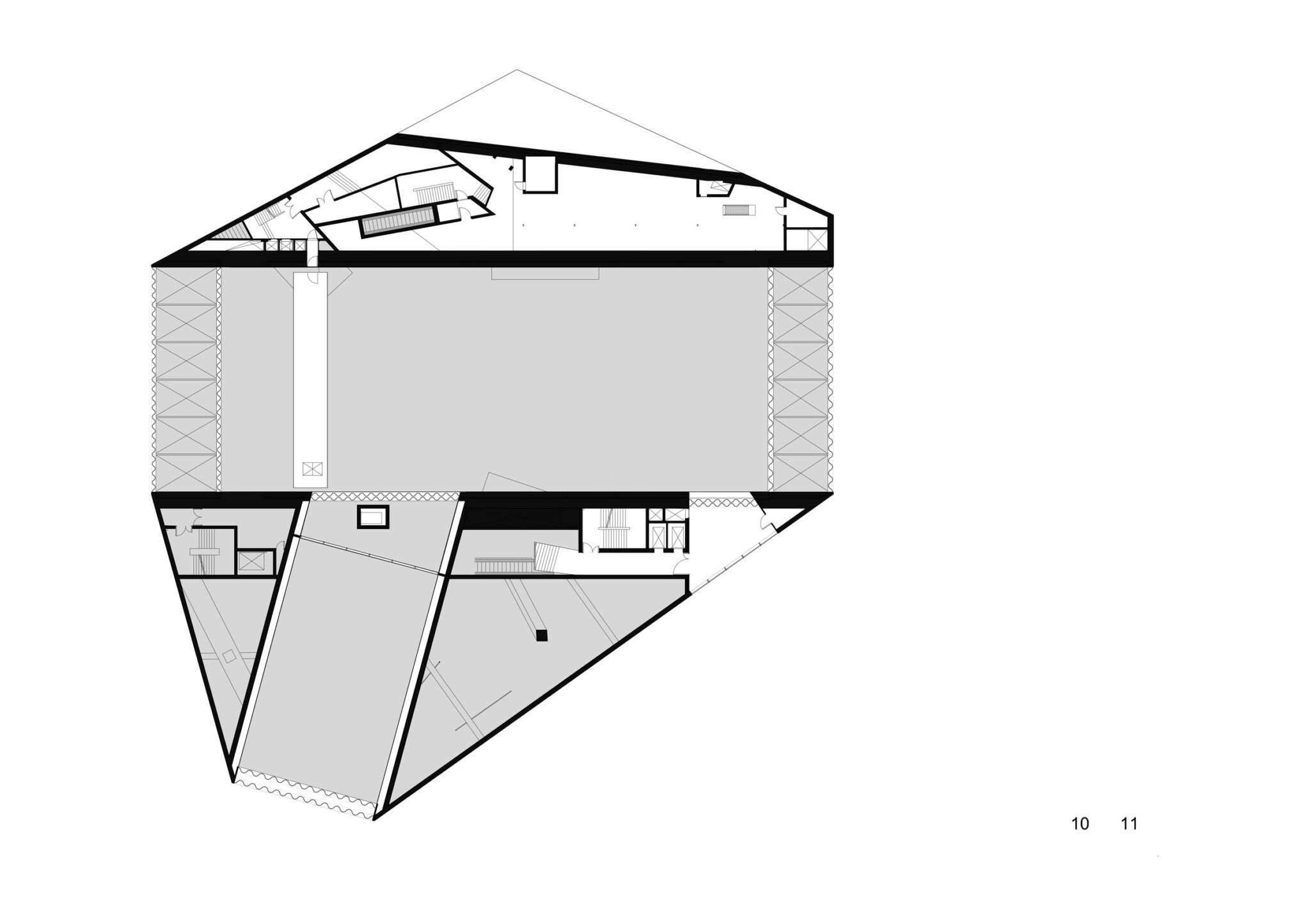 The “remaining spaces‟ between the exposed public functions consist of secondary serving spaces such as foyers, a restaurant, terraces, technical spaces and vertical transport.