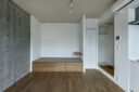 向山博 / 向山建築設計事務所による、東京の「三鷹台ストリート」。駅前のバスターミナルと通りに面した店舗併設の集合住宅。ランドマークであり2つの用途が“協調しあう”在り方を目指し、外周の構造壁を千鳥状にずらして重ねる外観を考案。街への貢献も意図し滞在空間等を設ける3階、住戸306号室(建築家による解説:布団を敷く想定の小上りがある。下部は収納) photo©小出薫