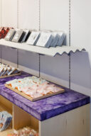 SNARK Inc.による、群馬の店舗「Think桐生」。駅構内のビアスタンド併設の売店。“地域活性化の新たな拠点”を目指し、エリアを想起させる素材を用いて文化や風景の“アイコン化”を実施。時間帯での利用客の変化に応える為にカウンターとなる可動什器も考案売場、什器の詳細 photo©新澤一平