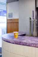 駅構内のビアスタンド併設の売店の計画です。建築家は、“地域活性化の新たな拠点”を目指し、エリアを想起させる素材を用いて文化や風景の“アイコン化”を実施しました。また、時間帯での利用客の変化に応える為にカウンターとなる可動什器も考案しました。店舗の場所はこちら(Google Map)。