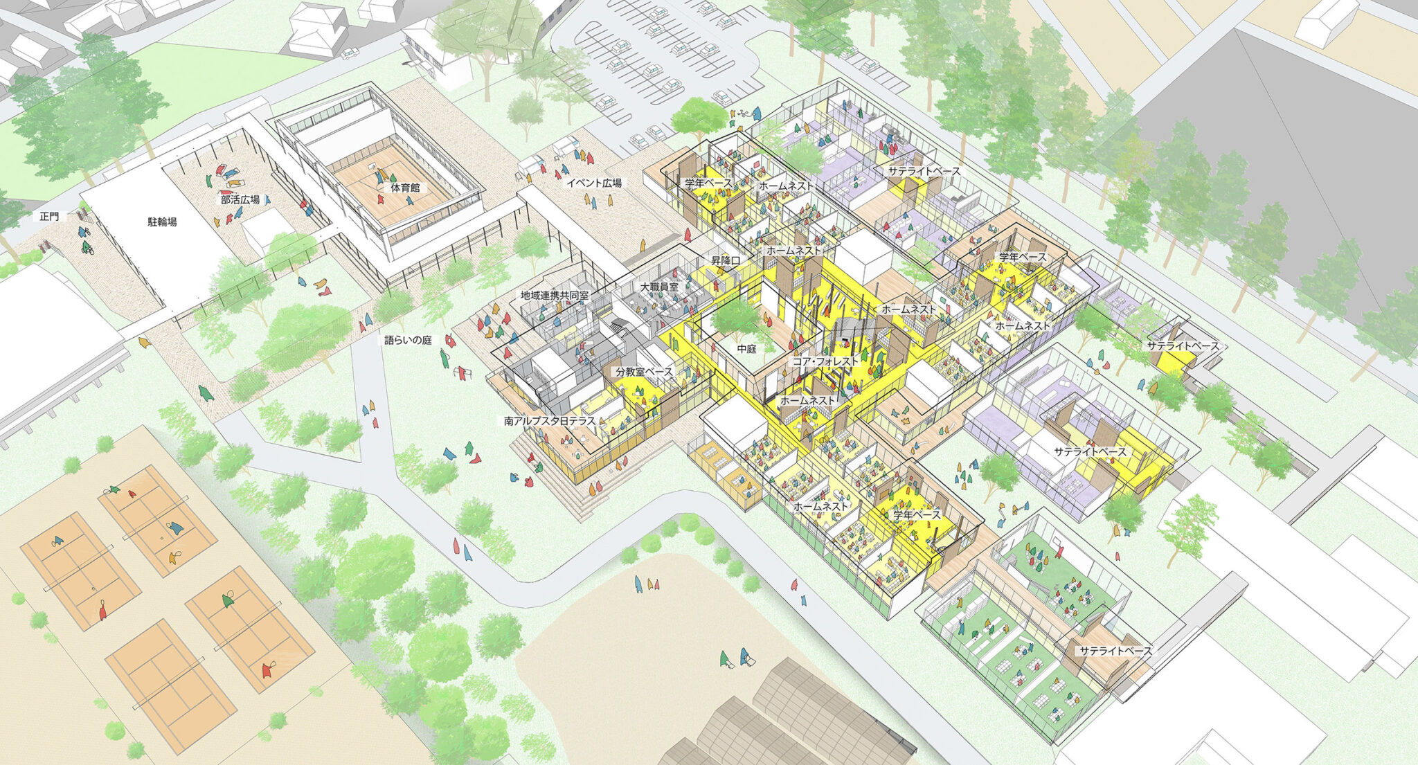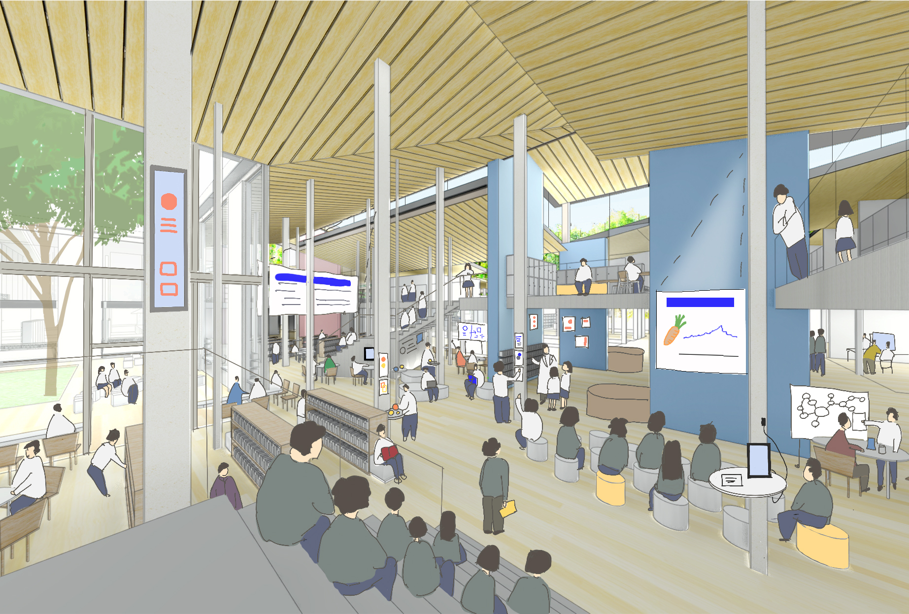 遠藤克彦建築研究所・waiwai共同企業体が、長野の「上伊那総合技術新校(仮称)」プロポで最適候補者に選定。提案書とプレゼン動画も公開。二次審査には、千葉学建築計画事務所、シムサ・キッタン・アンド・ウエストJV、わたしもそうJVが名を連ねる image©遠藤克彦建築研究所・waiwai共同企業体