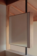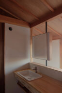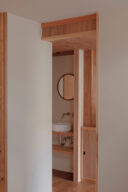 一色暁生建築設計事務所による、大阪・吹田市の「佐井寺の家」。標準像としての“ニュートラルな日本の住まい”も目指した計画。伸びやかな暮らしを求め、内外が完全に隔てられていない“透け感をもつ”建築を志向。日本家屋の意匠を“現代的に解釈”した要素でつくり上げる2階、洗面台、鏡の詳細 photo©Benjamin Hosking
