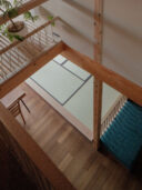 一色暁生建築設計事務所による、大阪・吹田市の「佐井寺の家」。標準像としての“ニュートラルな日本の住まい”も目指した計画。伸びやかな暮らしを求め、内外が完全に隔てられていない“透け感をもつ”建築を志向。日本家屋の意匠を“現代的に解釈”した要素でつくり上げる2階、廊下から吹抜越しに1階を見下ろす。 photo©Benjamin Hosking