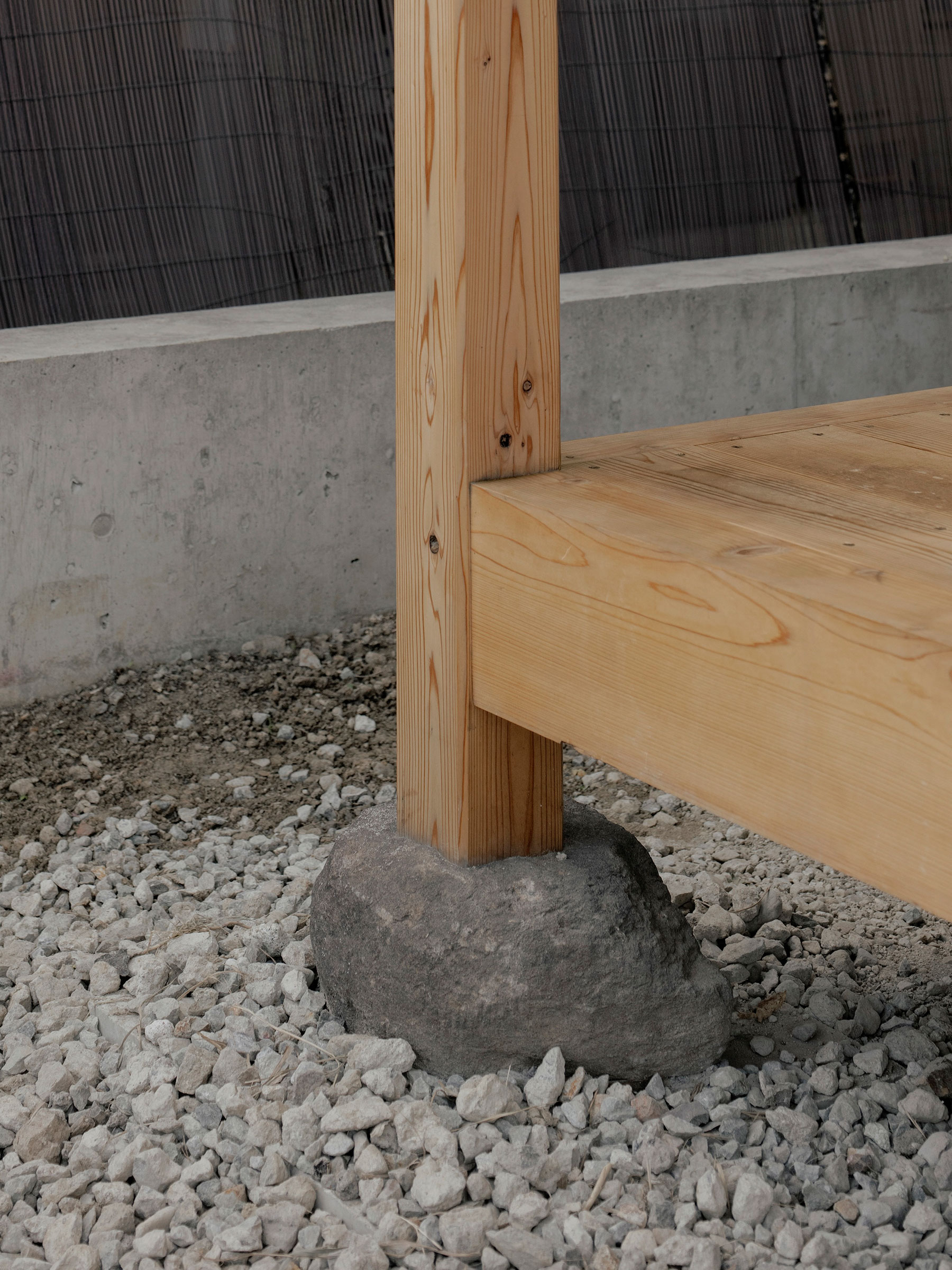 一色暁生建築設計事務所による、大阪・吹田市の「佐井寺の家」。標準像としての“ニュートラルな日本の住まい”も目指した計画。伸びやかな暮らしを求め、内外が完全に隔てられていない“透け感をもつ”建築を志向。日本家屋の意匠を“現代的に解釈”した要素でつくり上げる外観、柱と基礎の詳細 photo©Benjamin Hosking
