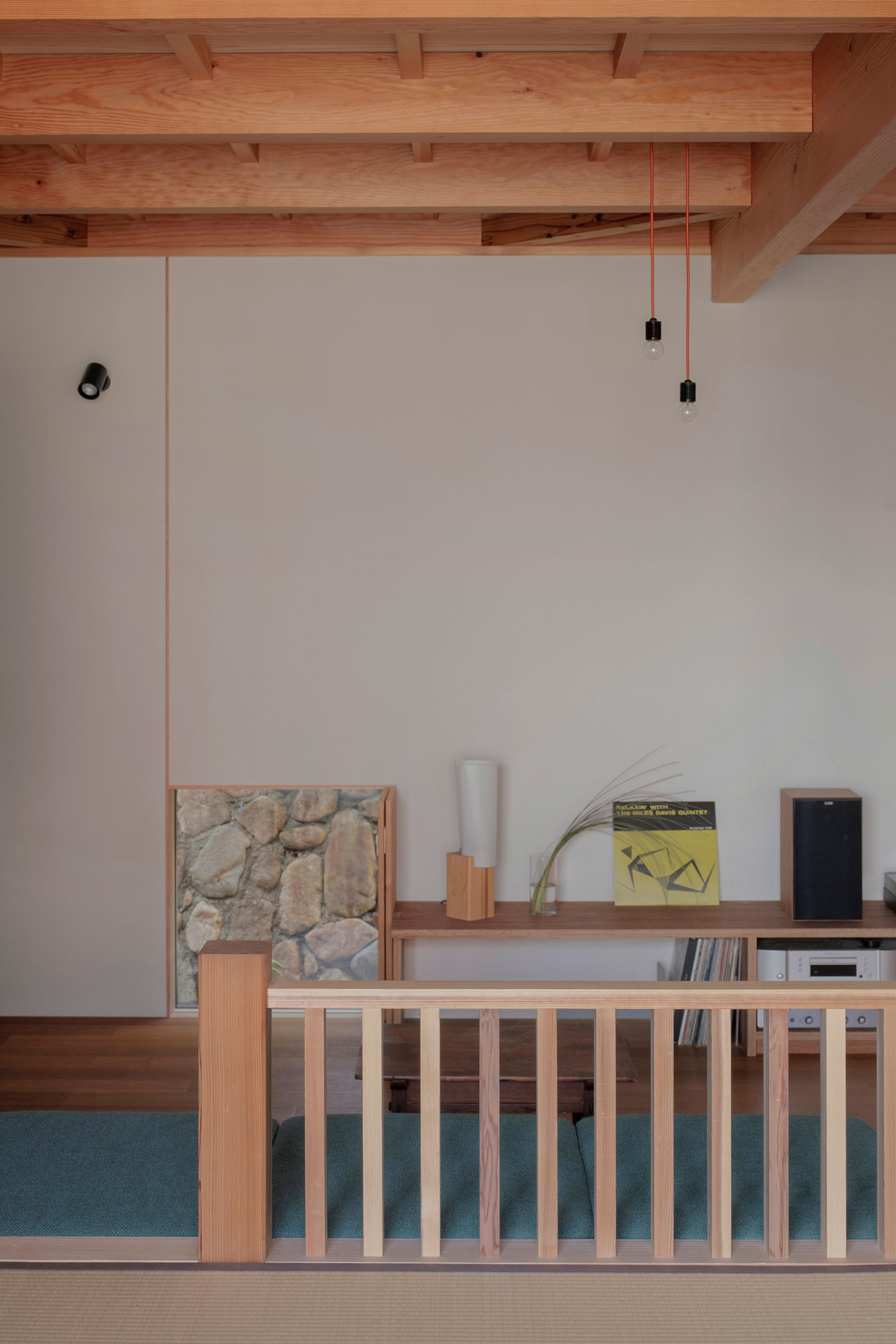 一色暁生建築設計事務所による、大阪・吹田市の「佐井寺の家」。標準像としての“ニュートラルな日本の住まい”も目指した計画。伸びやかな暮らしを求め、内外が完全に隔てられていない“透け感をもつ”建築を志向。日本家屋の意匠を“現代的に解釈”した要素でつくり上げる2階、階段横のホールから寝室側を見る。 photo©Benjamin Hosking