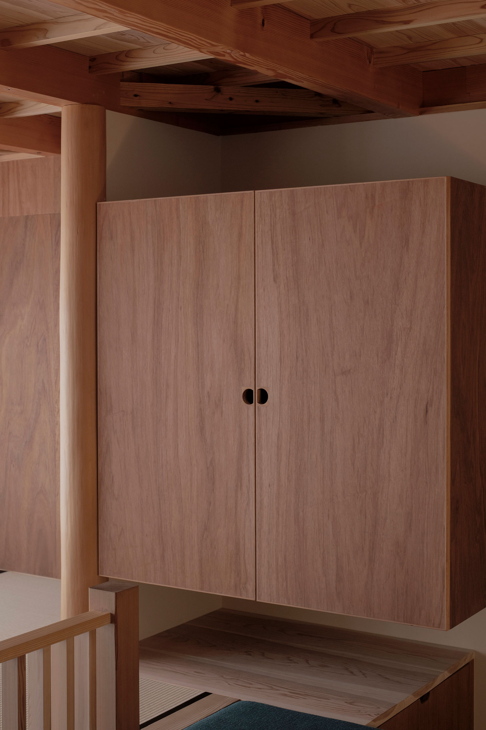 一色暁生建築設計事務所による、大阪・吹田市の「佐井寺の家」。標準像としての“ニュートラルな日本の住まい”も目指した計画。伸びやかな暮らしを求め、内外が完全に隔てられていない“透け感をもつ”建築を志向。日本家屋の意匠を“現代的に解釈”した要素でつくり上げる1階、和室、押入 photo©Benjamin Hosking