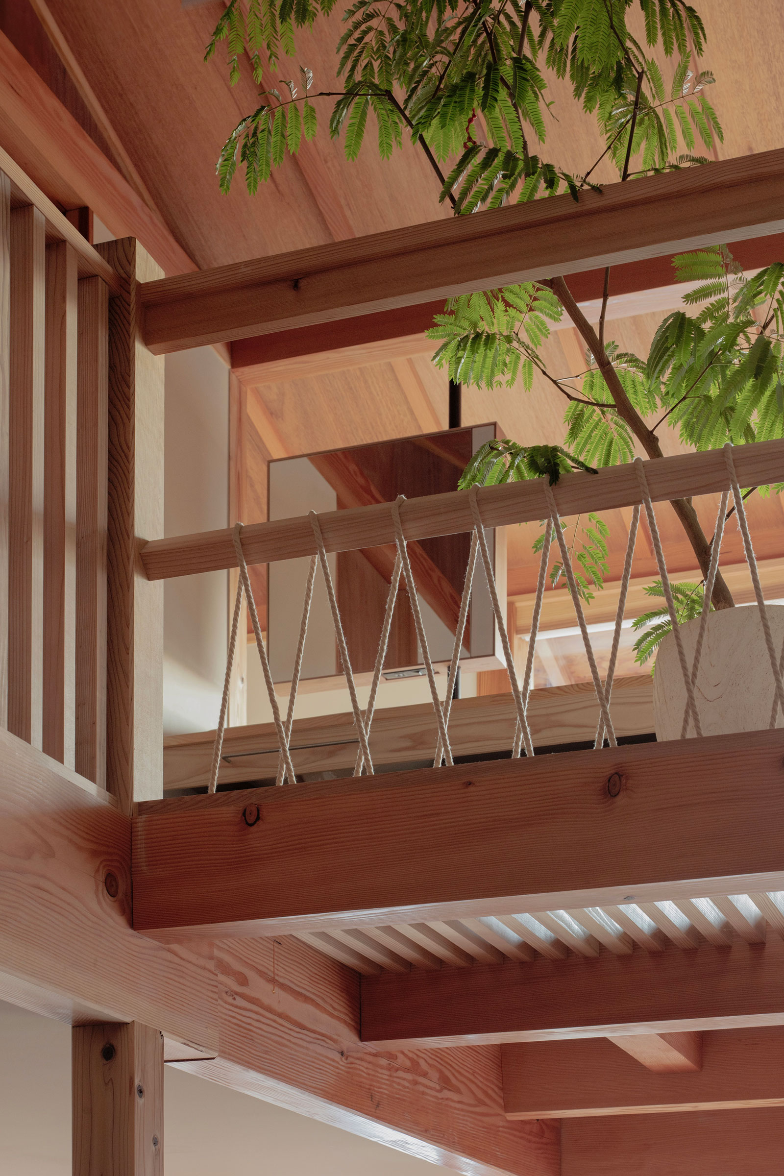 一色暁生建築設計事務所による、大阪・吹田市の「佐井寺の家」。標準像としての“ニュートラルな日本の住まい”も目指した計画。伸びやかな暮らしを求め、内外が完全に隔てられていない“透け感をもつ”建築を志向。日本家屋の意匠を“現代的に解釈”した要素でつくり上げる2階、手摺の詳細 photo©Benjamin Hosking
