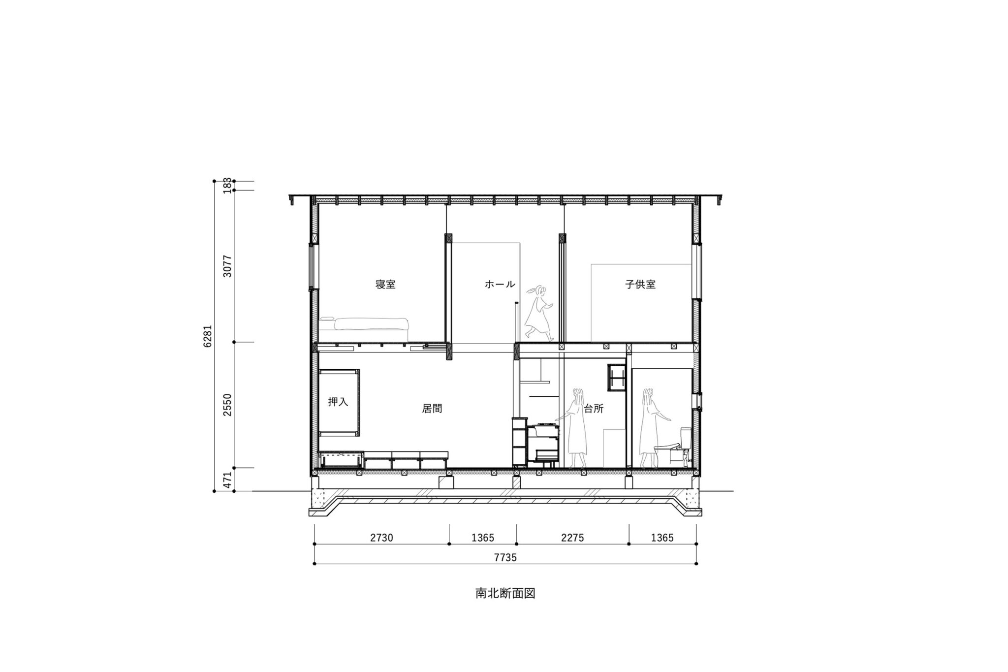 たとえ面積が小さくても、内と外、内と内が完全に隔てられていない透け感をもつ住宅であれば、窮屈さを感じずに暮らすことができるだろう。工事費が高騰し続ける今、永くこの国で育まれてきた住宅の姿を見つめ直すことこそ最適解であると信じ、設計を進めた。