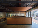 催し・飲食・販売を行う“多目的スペース”の計画です。建築家は、気軽に交流する店主の個性を“最大限活かす”空間を求め、街と正対する様に道路側にカウンターを配置する構成を考案しました。また、一人運営を考慮して店内を一望できるようにもしています。店舗の場所はこちら(Google Map)。