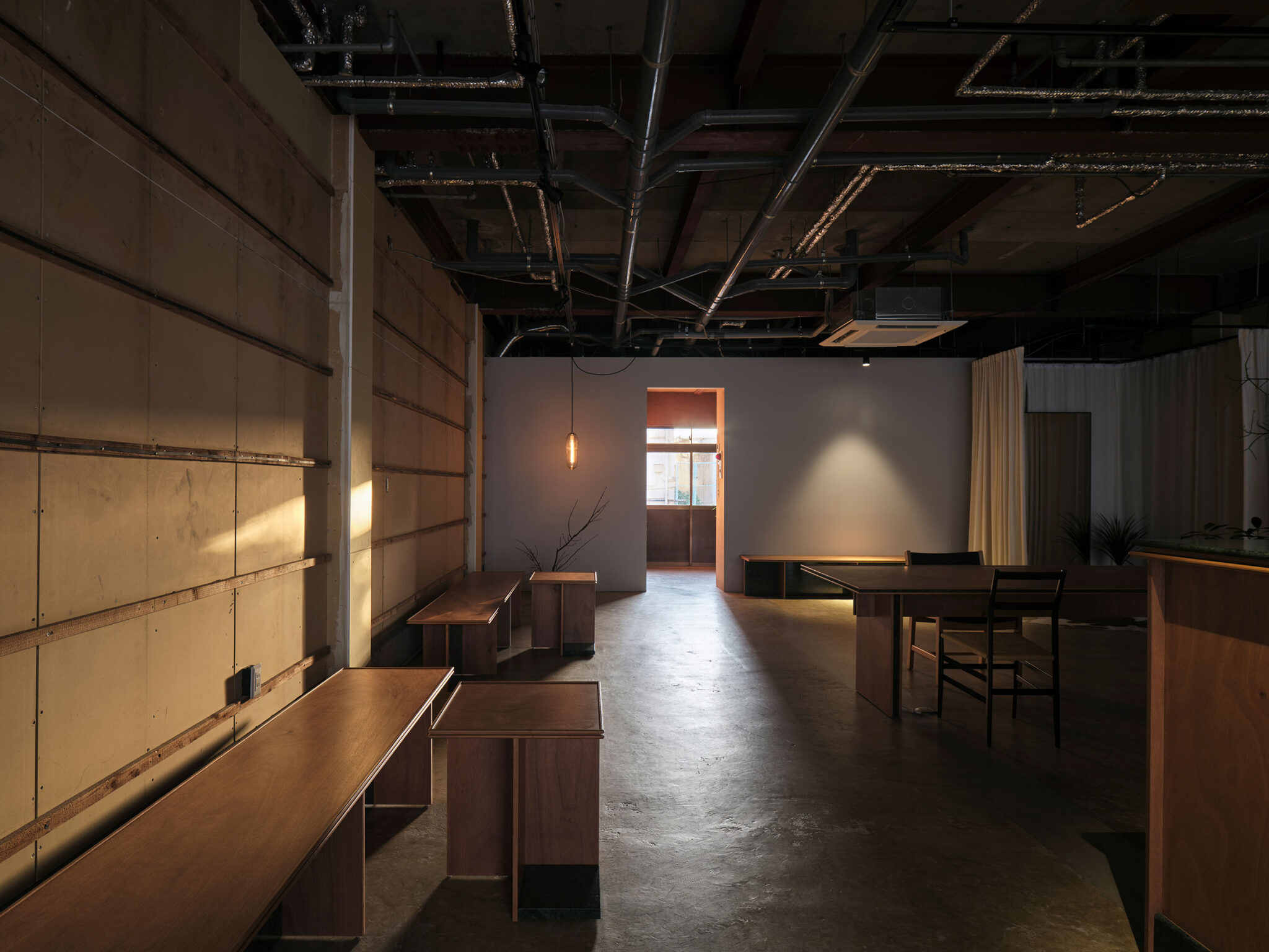 催し・飲食・販売を行う“多目的スペース”の計画です。建築家は、気軽に交流する店主の個性を“最大限活かす”空間を求め、街と正対する様に道路側にカウンターを配置する構成を考案しました。また、一人運営を考慮して店内を一望できるようにもしています。店舗の場所はこちら(Google Map)。