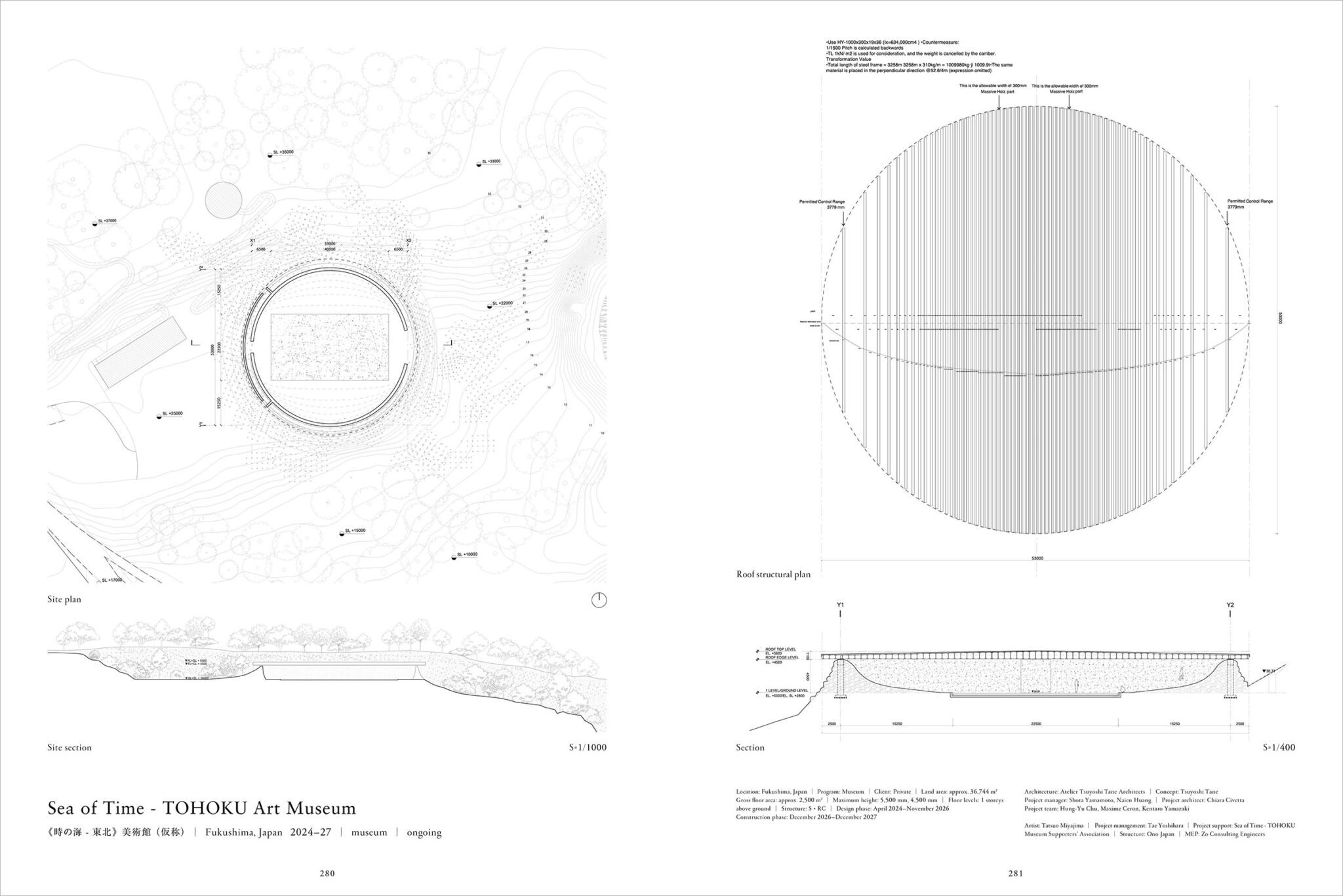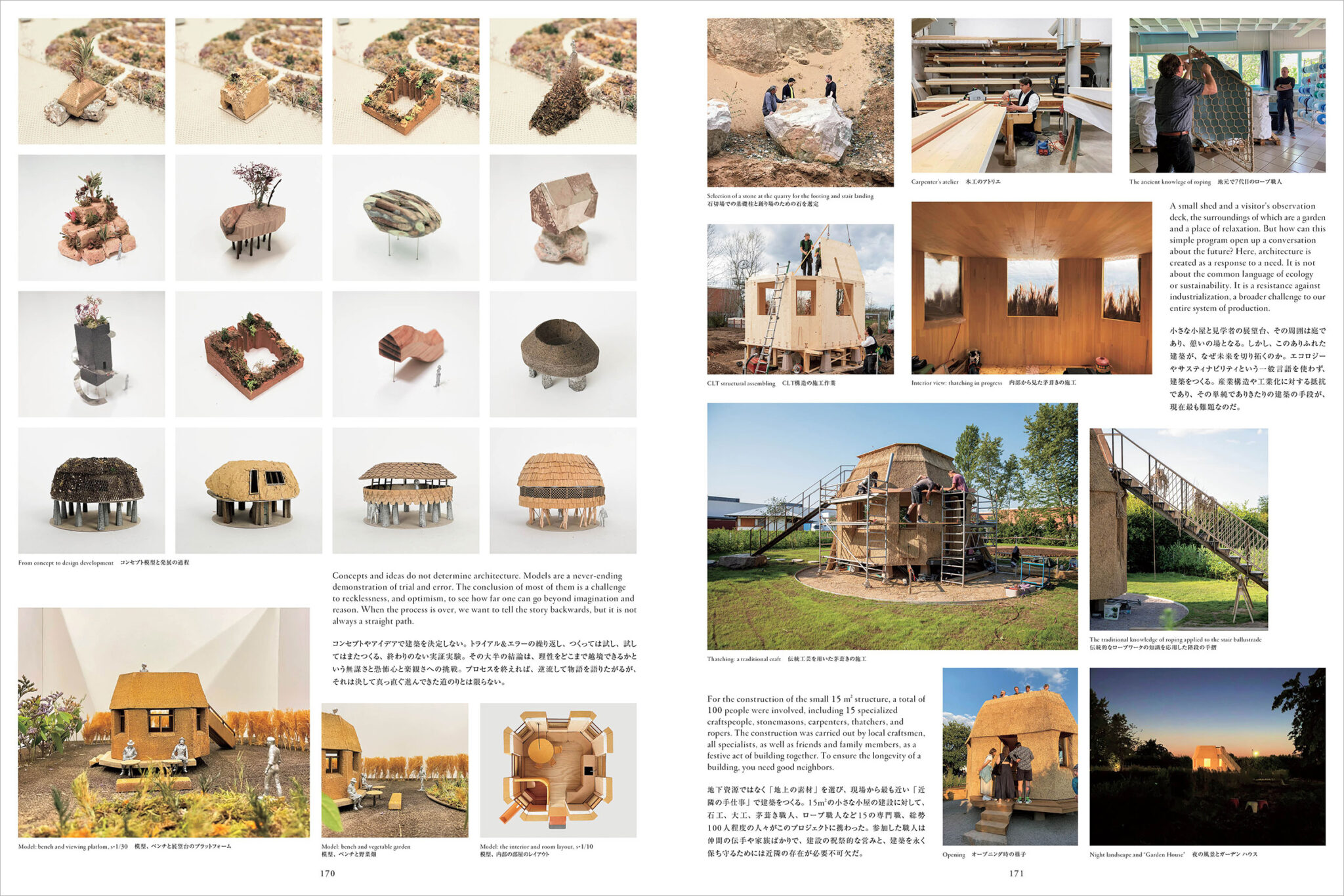 現在進行中の帝国ホテル東京 新本館計画、浅草寺宝物館(仮称)、パリのアルサーニ・コレクション財団美術館、ヴィトラ キャンパス内のTane Garden Houseなど、最新の建築プロジェクトを紹介しています。スケールを超えて貫かれる思考密度