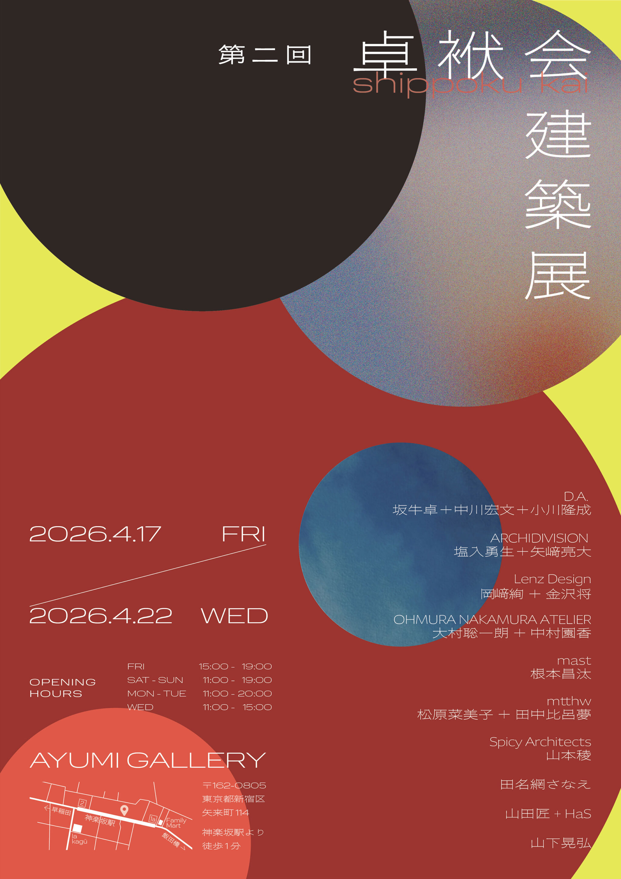 坂牛卓とその門下生による展覧会「第二回卓袱会建築展」が、東京・神楽坂の“AYUMI GALLERY”で開催されます。