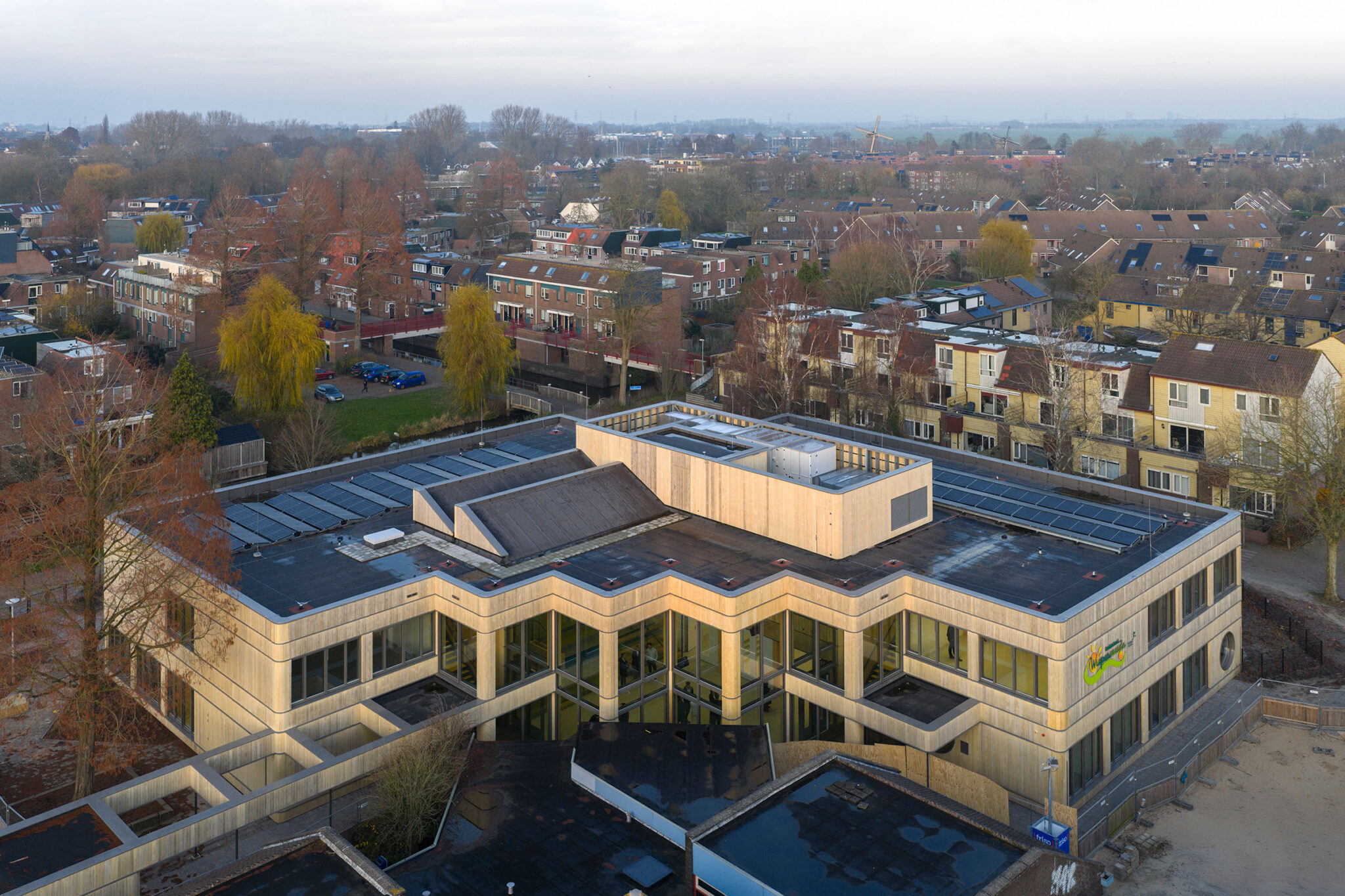 Amsterdam, 4 March 2026 – Basisschool Wisperweide in Amsterdam, designed by Jimmy van der Aa of Studio A Kwadraat in collaboration with OMA as part of the Schools by CircleWood consortium, is now complete. Constructed by Friso Bouwgroep, it is the first school in the Netherlands to be built using the CircleWood modular wood system, developed in collaboration with Studio A Kwadraat and OMA’s David Gianotten and Michael den Otter. The method has been adopted under Amsterdam’s 2023 Innovation Partnership School Buildings program, which aims to deliver between nine and thirty “high-quality, flexible, and sustainable” schools by 2050.