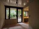 干田正浩 / MHAAによる、東京・目黒区の集合住宅「盤桓」。樹木が茂り“心地よい風”が流れる旧家の敷地での計画。木々を残し“風を取込む”建築を求め、内部から考えて“多様な住戸タイプ”を立体的に組合せる構成を考案。緑との補色関係を考慮して朱色のファサードとする3階、住戸H、寝室から開口部越しに外部を見る。(建築家による解説:目黒不動尊の樹木を望みながら西陽を遮る位置にラダーウォールを配置) photo©藤井浩司 TOREAL
