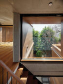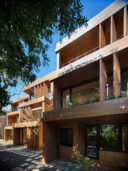 南側住戸には、敷地を横断する風を取り込むため、ラダーウォール(斜めの採風壁)を設置。誘引された風はジャロジー窓によって調整され、室内へと導かれる。この壁は同時に、通りからの視線や直射日光をやわらかく制御する役割も担っている。