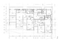 干田正浩 / MHAAによる、東京・目黒区の集合住宅「盤桓」。樹木が茂り“心地よい風”が流れる旧家の敷地での計画。木々を残し“風を取込む”建築を求め、内部から考えて“多様な住戸タイプ”を立体的に組合せる構成を考案。緑との補色関係を考慮して朱色のファサードとする3階平面図 image©MHAA建築設計事務所