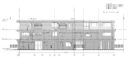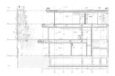 干田正浩 / MHAAによる、東京・目黒区の集合住宅「盤桓」。樹木が茂り“心地よい風”が流れる旧家の敷地での計画。木々を残し“風を取込む”建築を求め、内部から考えて“多様な住戸タイプ”を立体的に組合せる構成を考案。緑との補色関係を考慮して朱色のファサードとする軒先詳細図 image©MHAA建築設計事務所