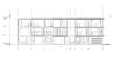 干田正浩 / MHAAによる、東京・目黒区の集合住宅「盤桓」。樹木が茂り“心地よい風”が流れる旧家の敷地での計画。木々を残し“風を取込む”建築を求め、内部から考えて“多様な住戸タイプ”を立体的に組合せる構成を考案。緑との補色関係を考慮して朱色のファサードとする東側立面図 image©MHAA建築設計事務所