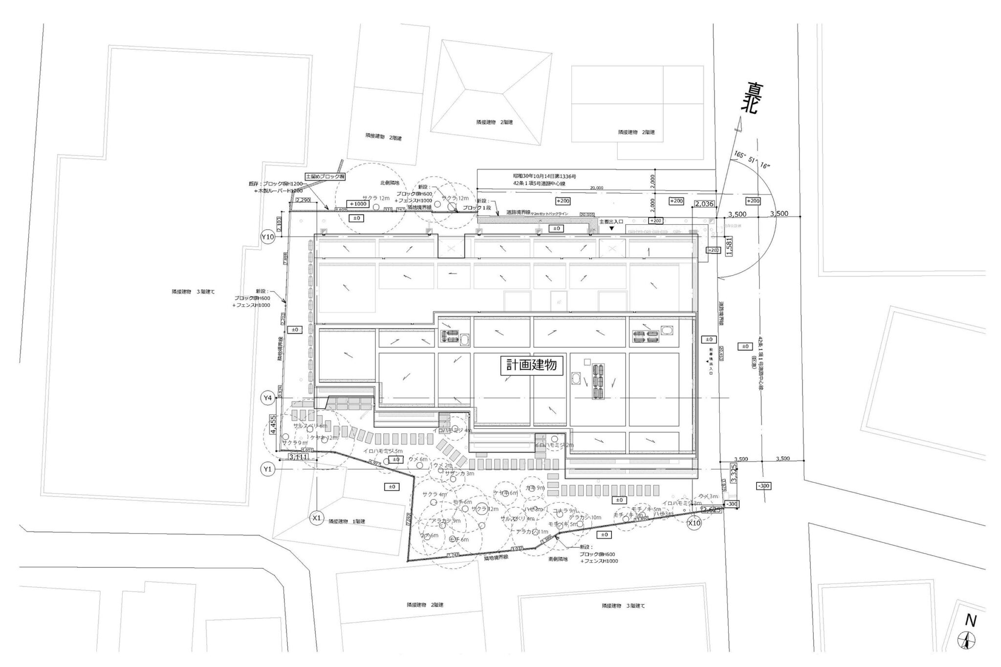 南側には、樹齢70年を超える桜をはじめ、梅、欅、アラカシ、サルスベリなど、種類も大きさも異なる樹木が点在していた。
