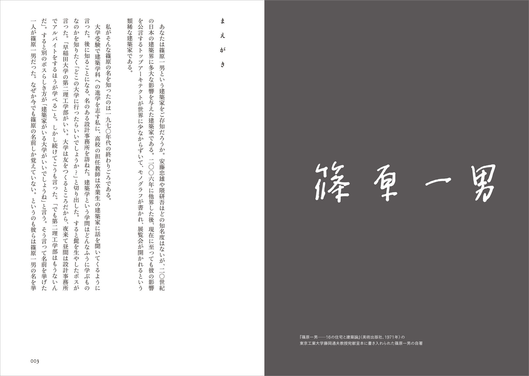 また、本書籍を抽選でプレゼントいたします。篠原直系の建築家が手掛ける“作家評論”で、設計・実作・言説の分析を通じて“実験精神”に迫る内容です。住宅39作品の図面も収録しています。