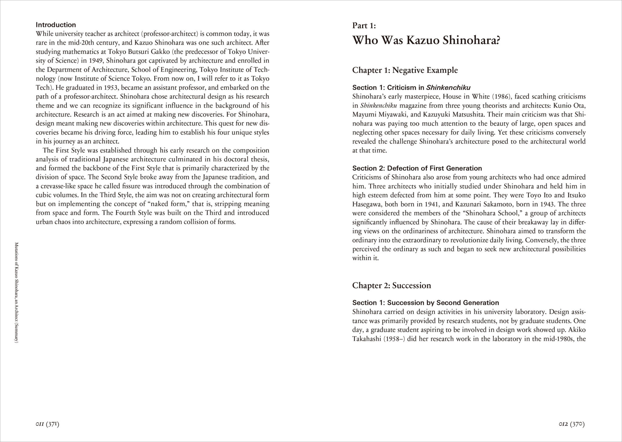 英文サマリー(Mutations of Kazuo Shinohara, an Architect)