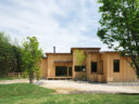 10. kurosawa kawara-tenによる、千葉・木更津市の「Gさんのための家」。施主が手入れを続けてきた敷地での計画。望む建築を共に探る対話のプロセスを試み、“のびやか”だか“草花を守る為に大きな建物は避ける”という思いを発見。1階面積を抑えて2階部分を大きく跳ね出す建築を考案