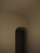 藤田時彦 / atelier umiによる、滋賀・高島市の「安曇川の家」。豊かな自然に囲まれた大きな敷地。施主の“森の中に住みたい”という要望を起点とし、“森のような要素”を空間に導入する計画を志向。天井高の変化と“柔らかなアール”の連続で木々の下を歩く様な感覚を生み出すエントランスからシューズインクローゼット側を見る。 photo©貝出翔太郎