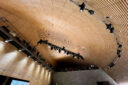 内藤廣建築設計事務所による、東京・世田谷区の「多摩美術大学 上野毛キャンパス新棟」。講義室・ギャラリー・講堂などを内包する施設。“雨露を凌ぐ清朗な覆い”となる大屋根があり、“競い合い、絆を結ぶ”ための交流テラスを備えた建築を考案。講堂は目に止まるように“お椀を伏せた”様な形態とする1階、講堂 photo©architecturephoto