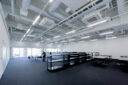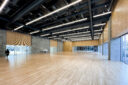 内藤廣建築設計事務所による、東京・世田谷区の「多摩美術大学 上野毛キャンパス新棟」。講義室・ギャラリー・講堂などを内包する施設。“雨露を凌ぐ清朗な覆い”となる大屋根があり、“競い合い、絆を結ぶ”ための交流テラスを備えた建築を考案。講堂は目に止まるように“お椀を伏せた”様な形態とする4階、大学院 総合デザイン専攻、実習室 photo©architecturephoto