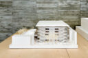内藤廣建築設計事務所による、東京・世田谷区の「多摩美術大学 上野毛キャンパス新棟」。講義室・ギャラリー・講堂などを内包する施設。“雨露を凌ぐ清朗な覆い”となる大屋根があり、“競い合い、絆を結ぶ”ための交流テラスを備えた建築を考案。講堂は目に止まるように“お椀を伏せた”様な形態とする「多摩美術大学 上野毛キャンパス新棟(本部棟・講堂)」の模型 photo©architecturephoto
