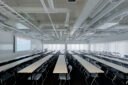 内藤廣建築設計事務所による、東京・世田谷区の「多摩美術大学 上野毛キャンパス新棟」。講義室・ギャラリー・講堂などを内包する施設。“雨露を凌ぐ清朗な覆い”となる大屋根があり、“競い合い、絆を結ぶ”ための交流テラスを備えた建築を考案。講堂は目に止まるように“お椀を伏せた”様な形態とする2階、リベラルアーツセンター、講義室 photo©architecturephoto