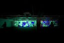 内藤廣建築設計事務所による、東京・世田谷区の「多摩美術大学 上野毛キャンパス新棟」。講義室・ギャラリー・講堂などを内包する施設。“雨露を凌ぐ清朗な覆い”となる大屋根があり、“競い合い、絆を結ぶ”ための交流テラスを備えた建築を考案。講堂は目に止まるように“お椀を伏せた”様な形態とする地下1階、メディアラボ(映像作品 「hello world」 by qubibi、2010‐2026) photo©architecturephoto
