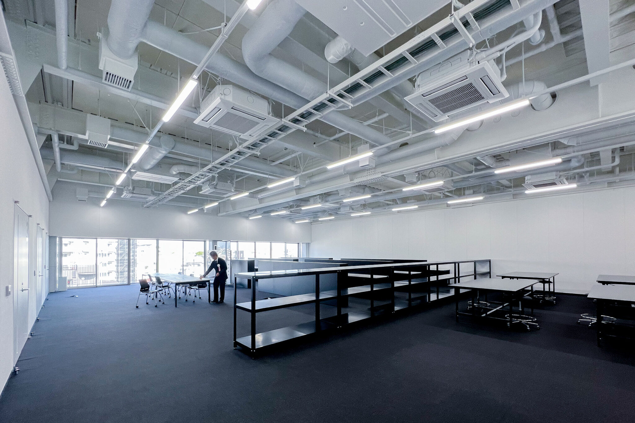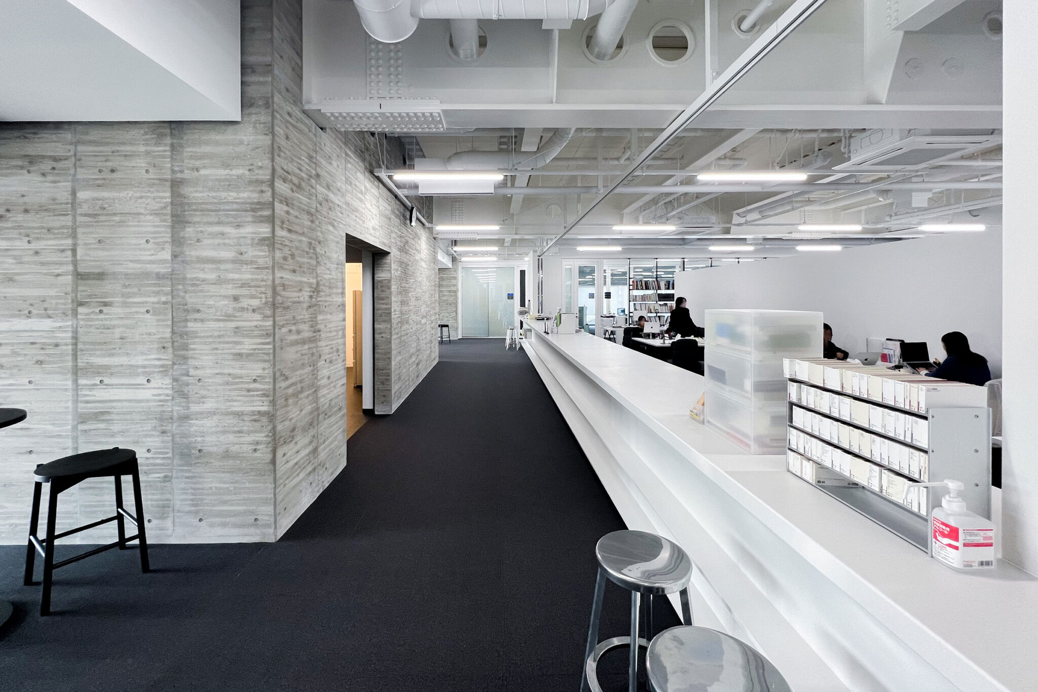 1階のギャラリーは天井を高く取り、さまざまな利用ができるようになっています。ここは表通りである環状8号線に向けて開かれており、いわば上野毛キャンパスのショーケースのような空間になります。