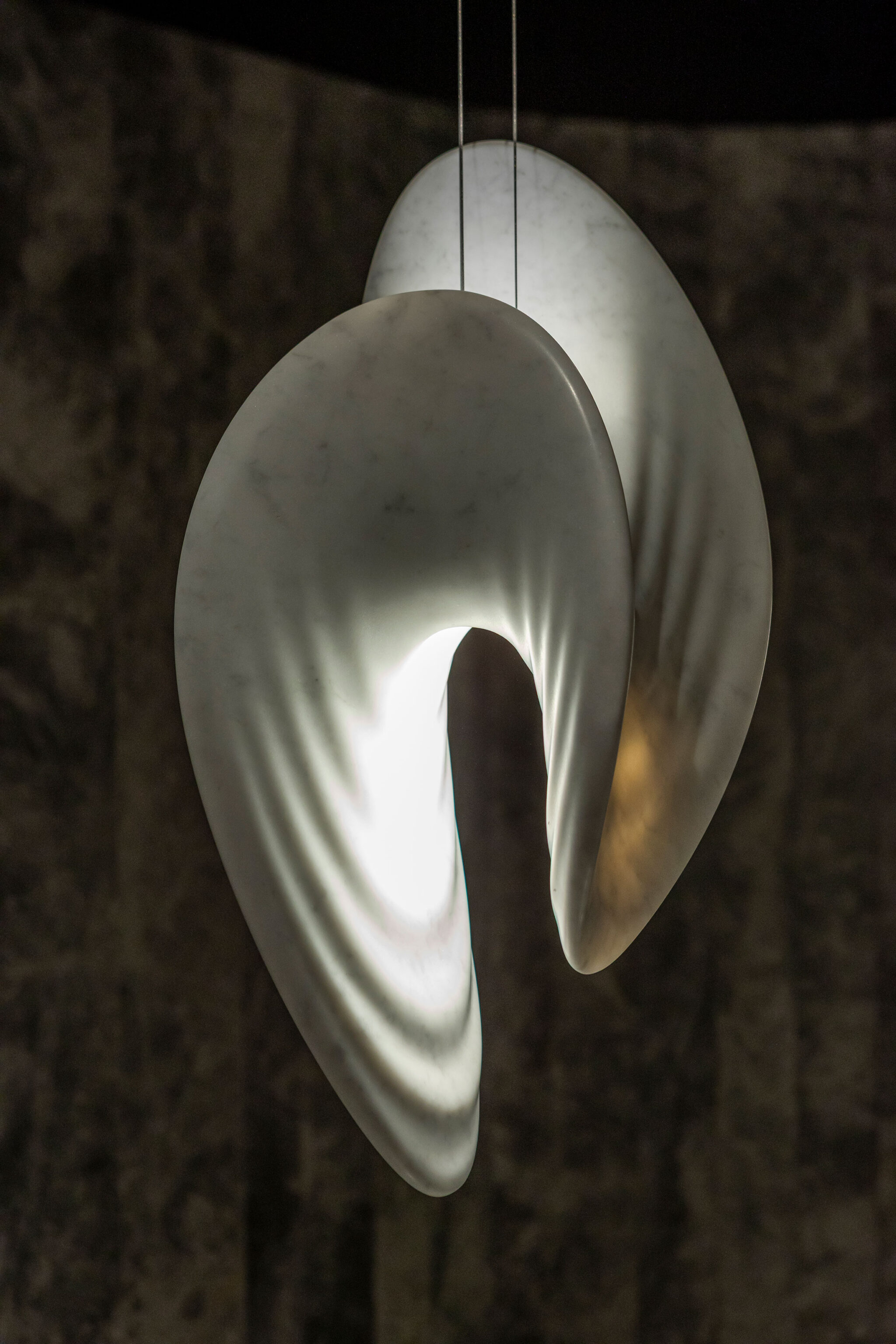 重力や永続性を超えた先にあるものを想像するよう私たちを誘う――石や金属、ガラスから生まれていながらも、無重力をささやくデザインです。
