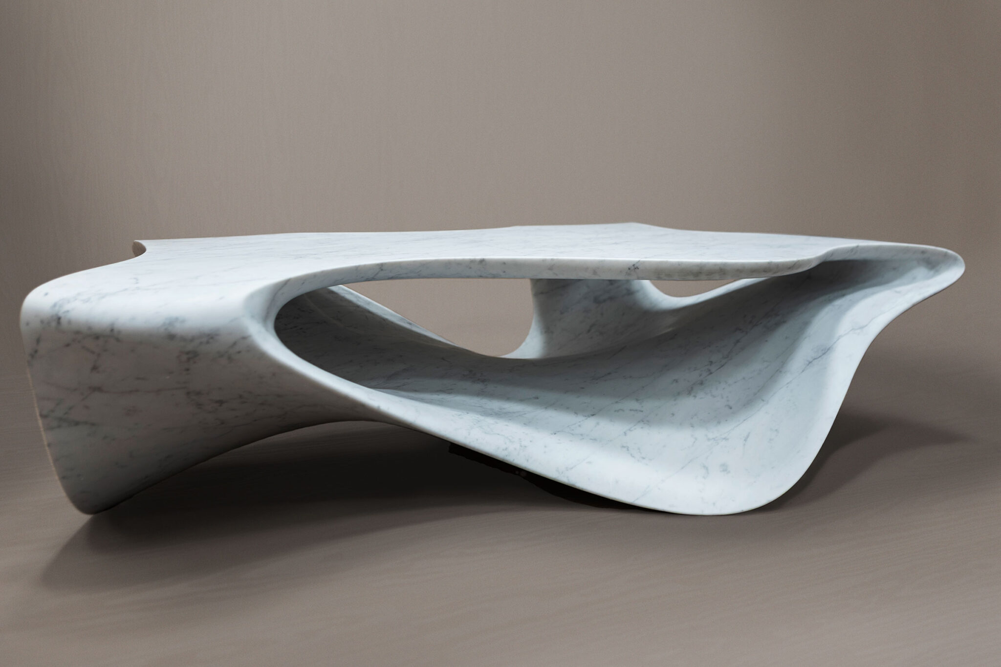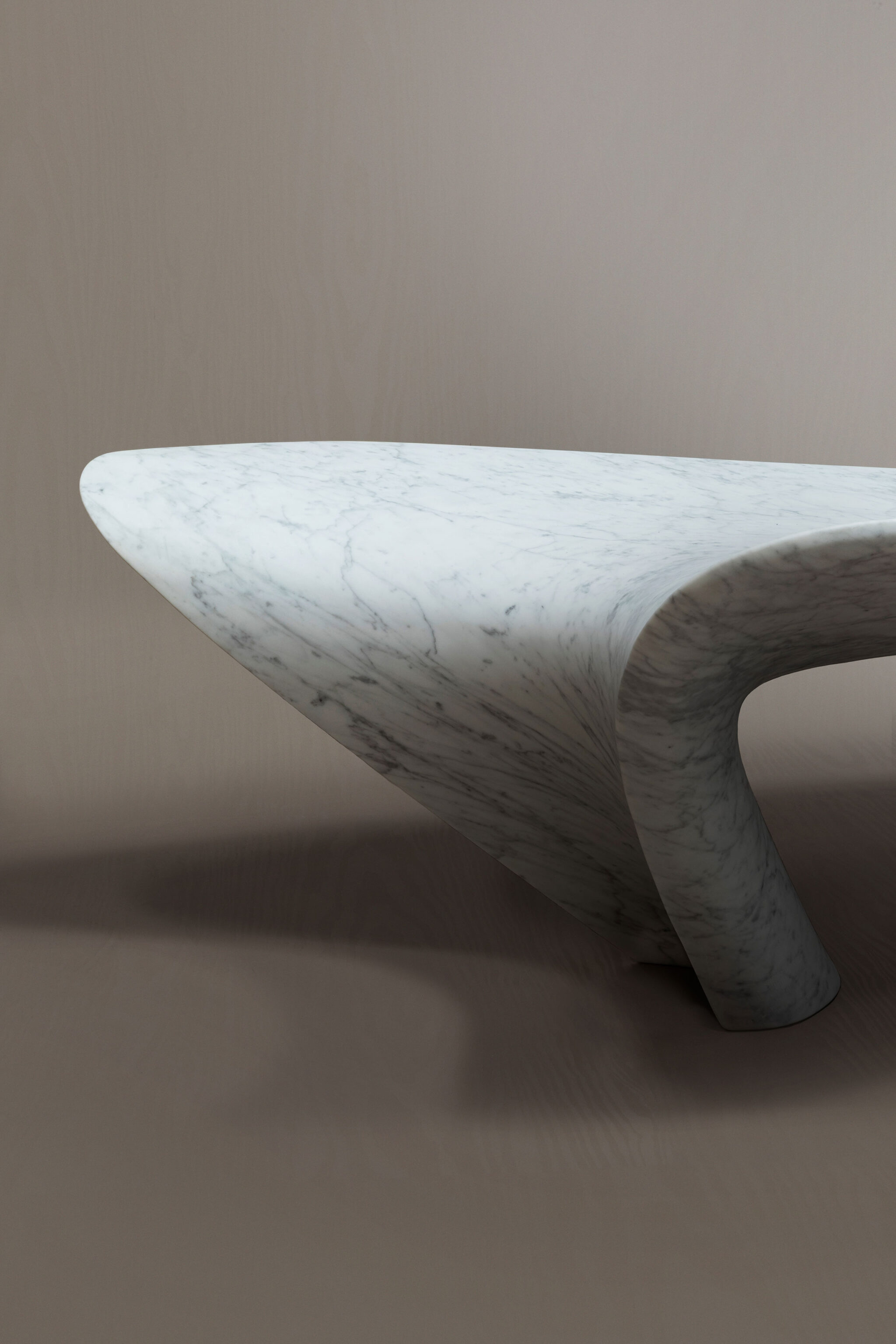 MINERAテーブルとBRANCHコンソールは、自然石の表現的な使用を通じて2024年に本コレクションの基盤を確立しました—侵食や地質学的プロセスに着想を得て、コレクションの無垢の大理石から削り出された流動的なフォルムが、自然素材の彫刻的可能性を探求しています。