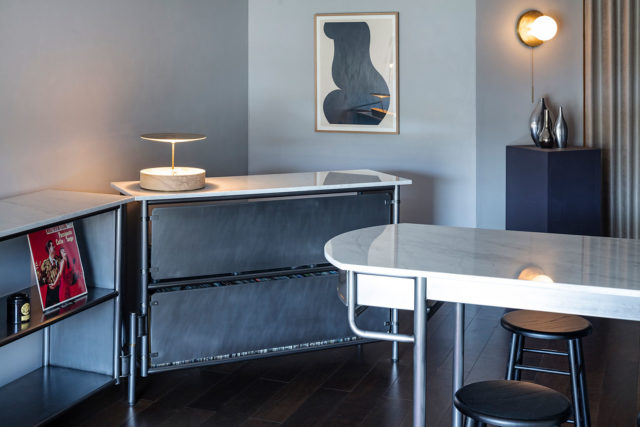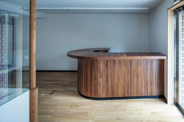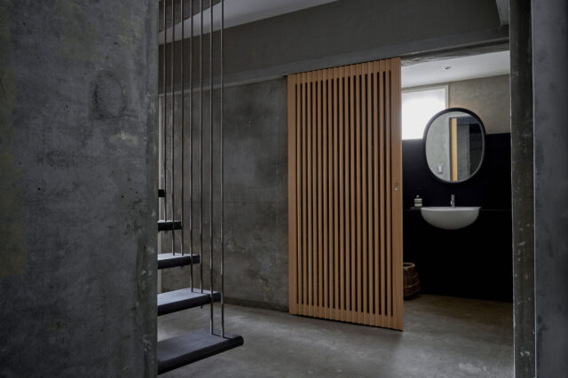 よって、壁、エントランスドア、床、天井、階段、手摺、照明、把手類など、必要な条件について、長さ、幅、高さ、動線、角度等を操作するだけに留め、身体感覚として少しだけ違和感の残る、”ほどほど”にニュートラルな空間とすることとしました。太いことや厚いことは、洗練や繊細とは真逆に向かう危険性がありますが、ここでは その真逆をオーナーから求められていました。