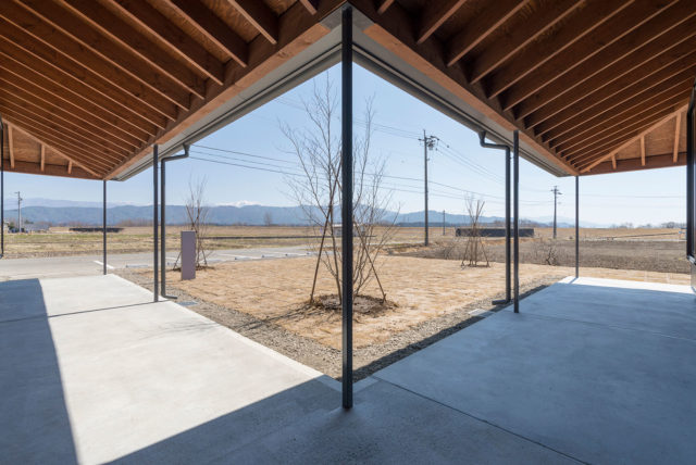 日常の生活のなかで野良仕事などが一般的に行われる環境においては、屋内外の活動が住宅の土間や軒下などの半屋外空間を介して地続きで行われていることが多い。計画に際しては、増沢の「最小限住居」の「2階部分をずらす」ことで1階部分に軒下空間をつくり、屋内外の活動が軒下空間においてゆるやかに混ざりあうことを目指した。