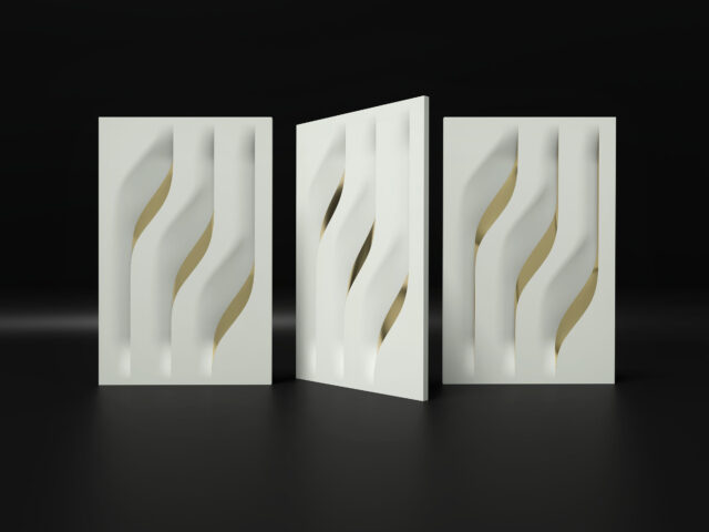 ザハ・ハディド事務所による、ドア「Keller Pivotal Door」。チャリティーオークションの為の製品。事務所の特徴的な建築言語と、抽象と反復のコンセプトを融合させデザイン。金属製の象眼が流動的な幾何学的形状を際立たせる