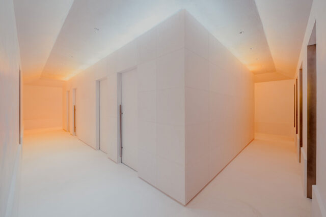 お堂への扉は普段は閉じられているが、この建築の象徴的中心として改修部のどこからでもその存在を感じられるよう、改修部とお堂の境界はすべて荒々しい土壁で仕上げ、 そこに両者をつなぐ各種の開口部を設けた。