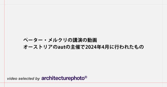 SHARE ペーター・メルクリが、2002年にAAスクールで行った講演「Small Houses in Concrete」の動画